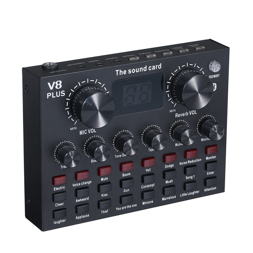 dodocool V8 Plus Live Sound Card with Audio Cable USB Cable BT Accompaniment Sound Effects Universal for Phone Computer