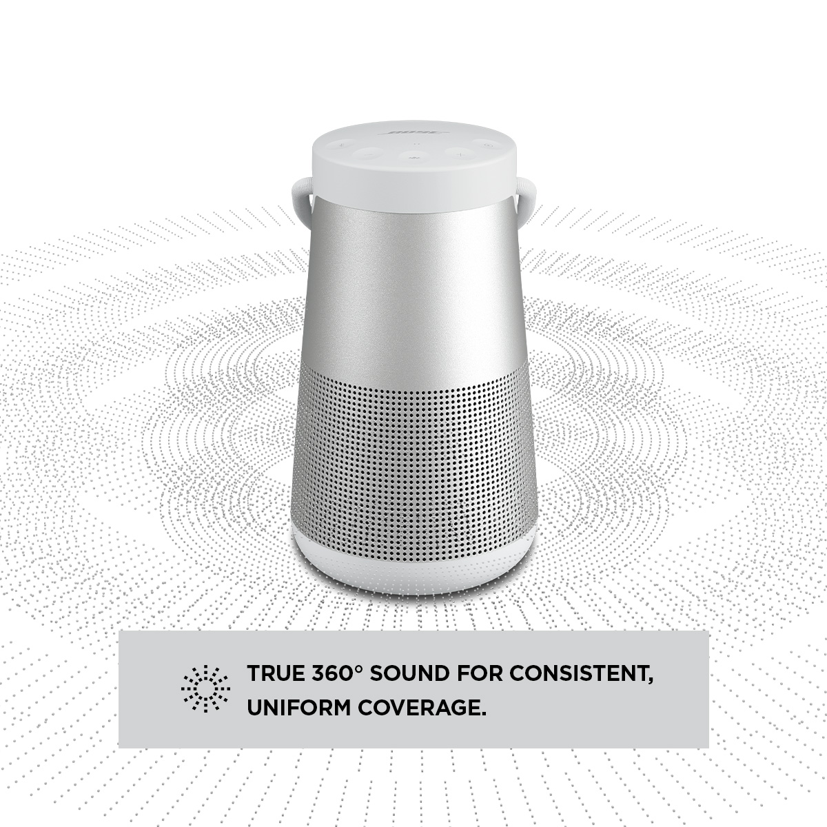A flexible fabric handle makes SoundLink Revolve+ II easy to move. And it feels good, too. That’s because we meticulously chose every material for this speaker — right down to the soft, smooth buttons that ensure every interaction feels as natural as you know it should.