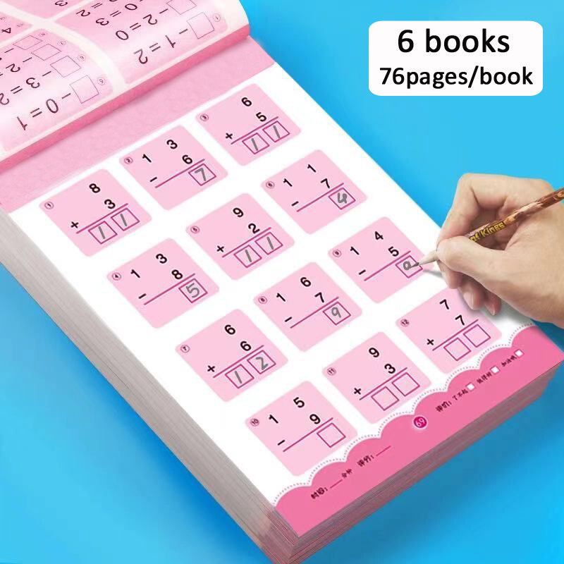 【6 Books】Children Addition And Subtraction Copybook Learning Math Exercise Homework Book Chinese Writing Textbook Kindergarten Mathematics Training Book 幼儿童加减法幼儿园口算数学练习本算术题