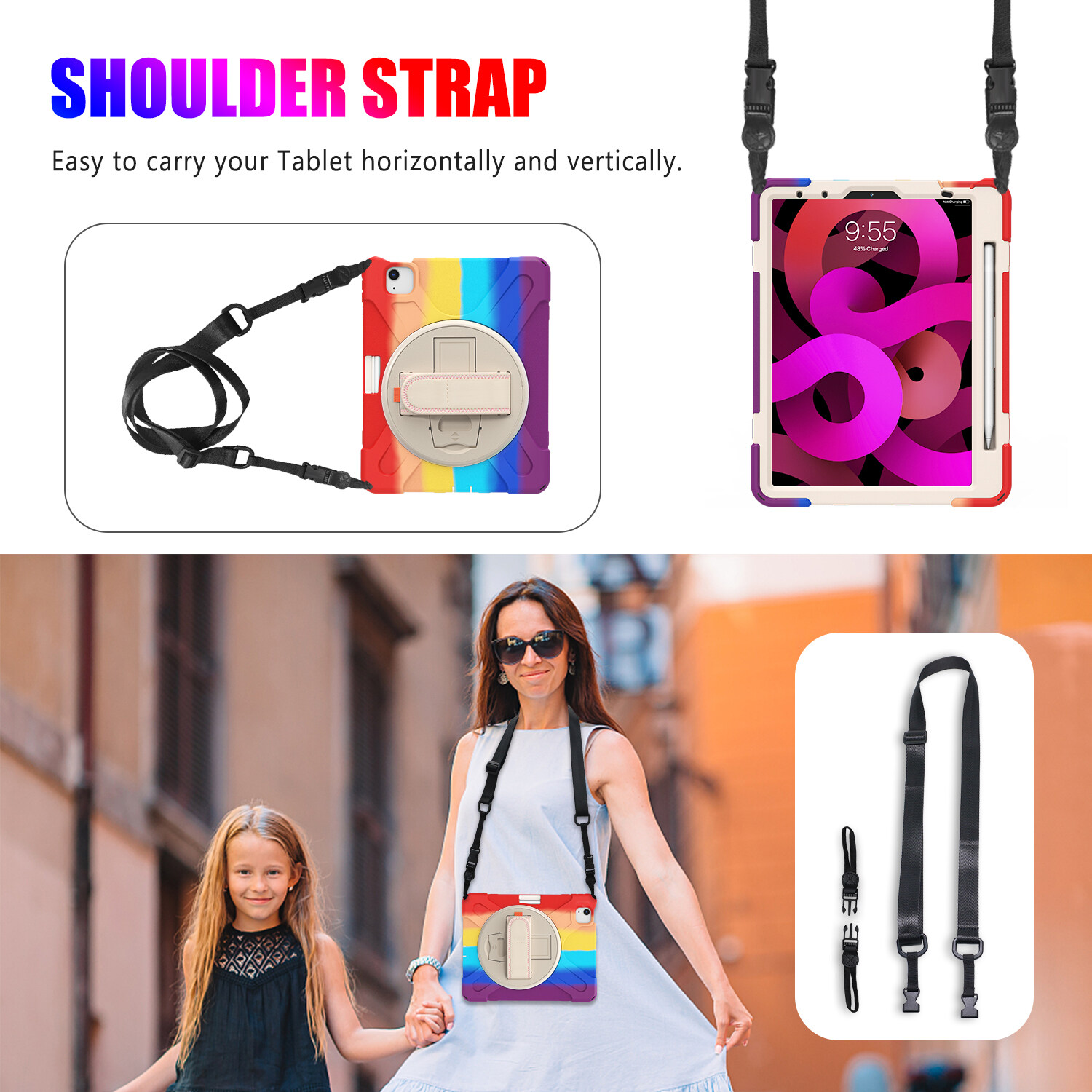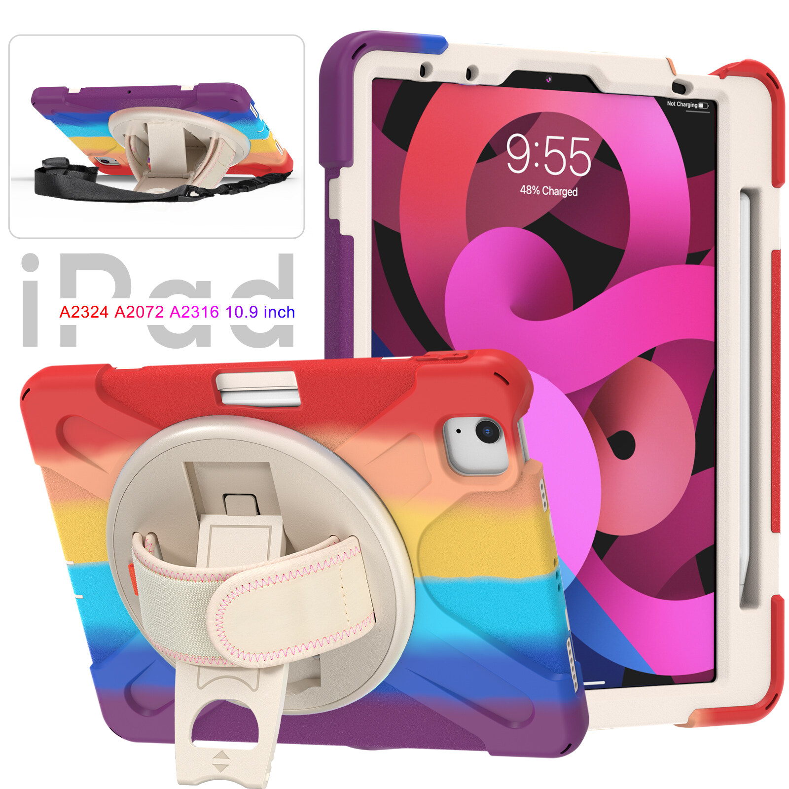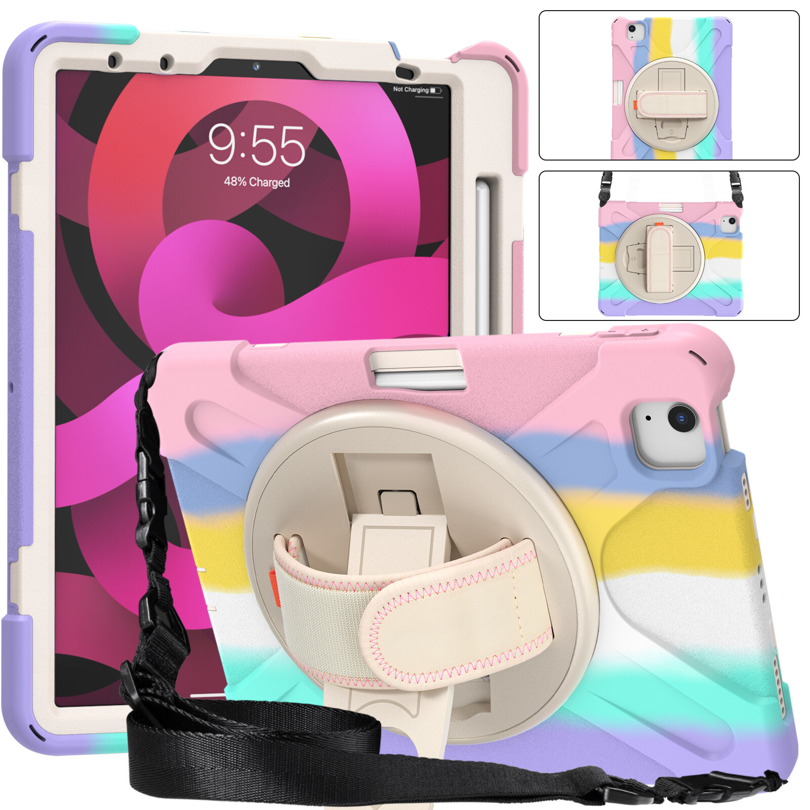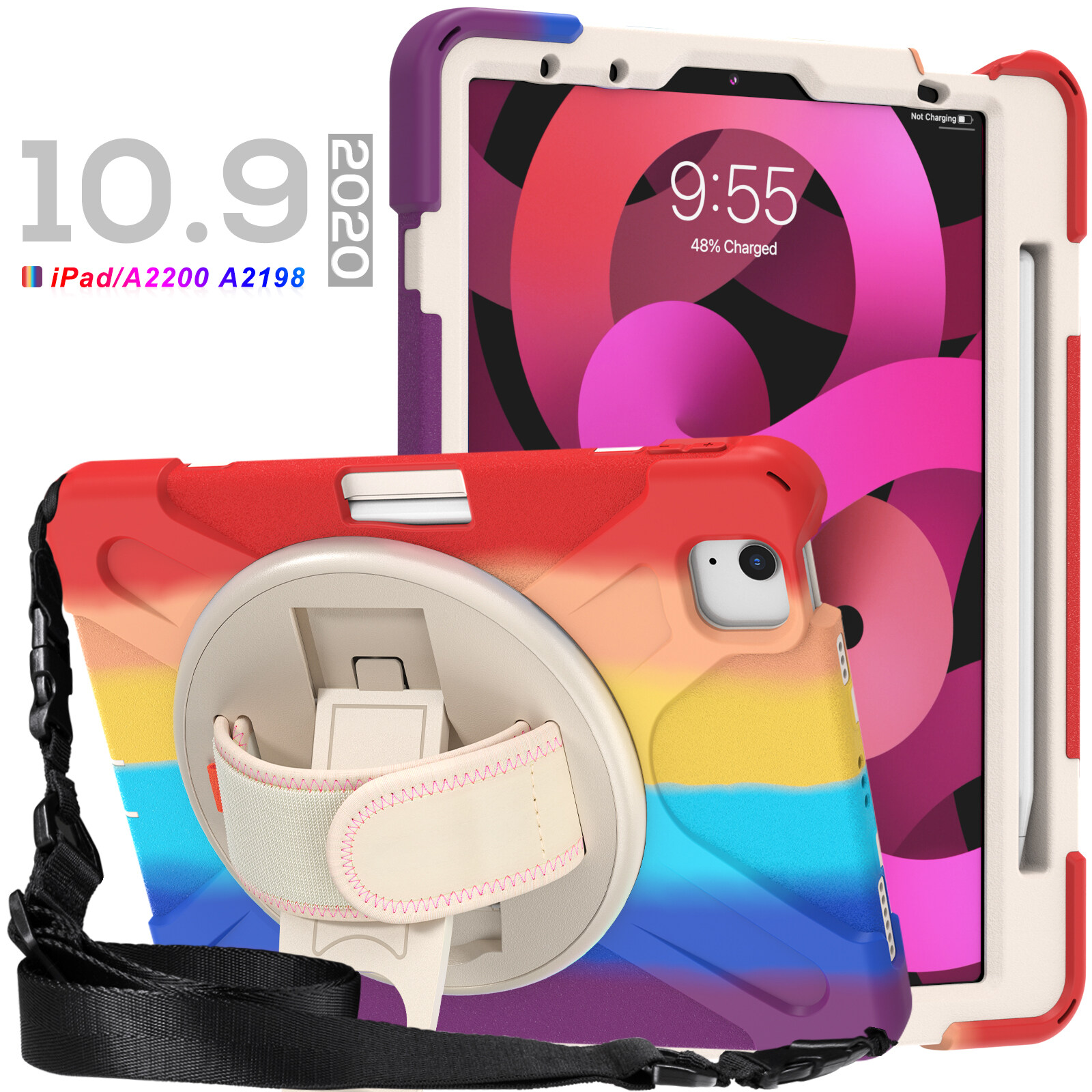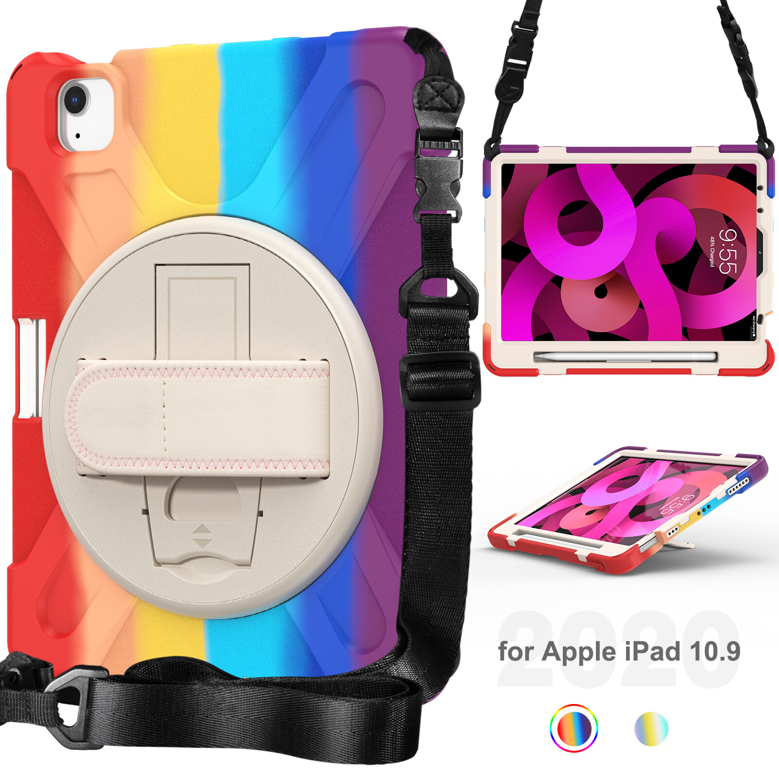 Rainbow Shockproof Heavy Duty Kids Safe iPad Case for iPad 10th 9th 6th 7th 8th Generation Case 10.2 2020 2019 Pro 11 iPad Air 5th 4th Generation Mini 6th 5 4 with Wrist Strap Kickstand Cover