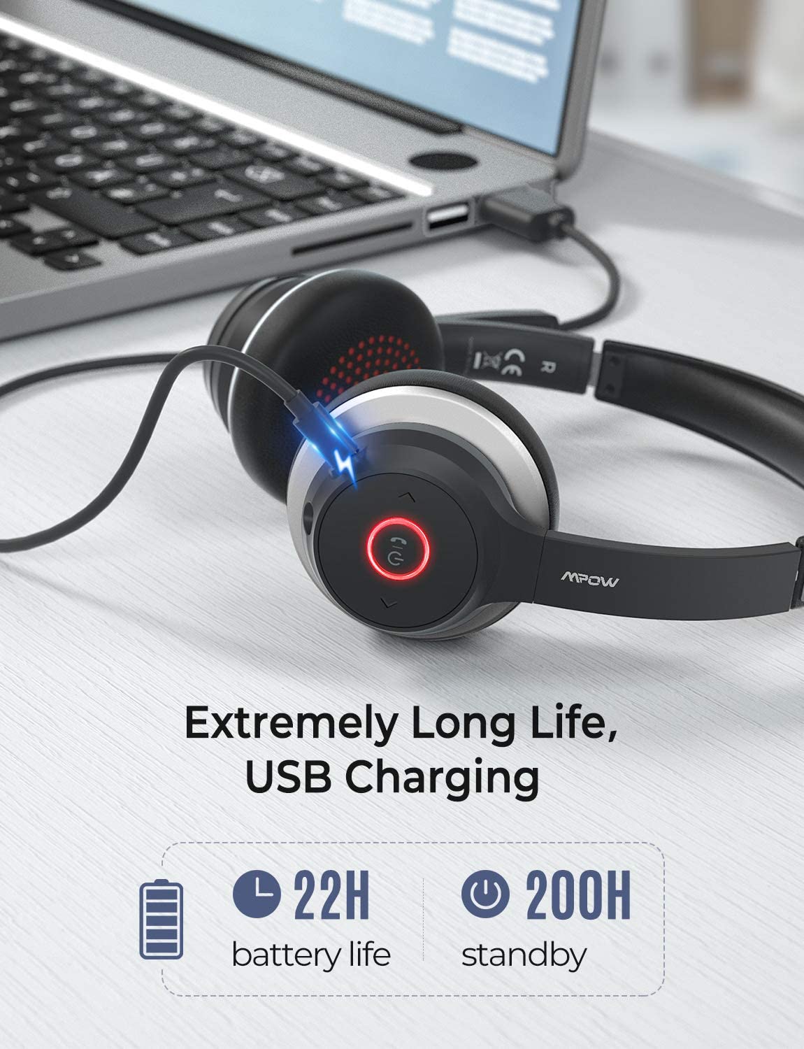 [Mpow] HC5 Wireless and Wired Headset with Dual Microphone, Bluetooth headset 5.0 with CVC 8.0 Noise Canceling Microphone, 22Hrs Talk Time, Comfort Earmuff, Handsfree Wireless Headphone with Mute for