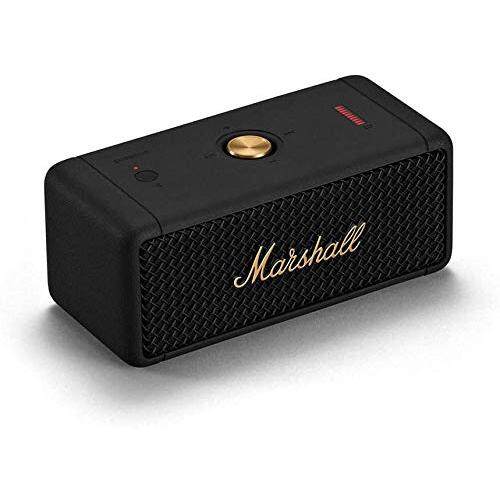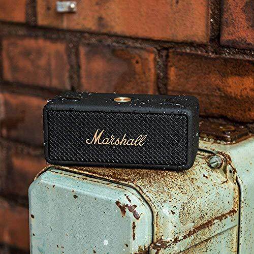 Marshall Wireless Portable Waterproof Speaker Emberton Black & Brass Continuous Playback 20 Hours / IPX7 Waterproof / Small / Fast Charge