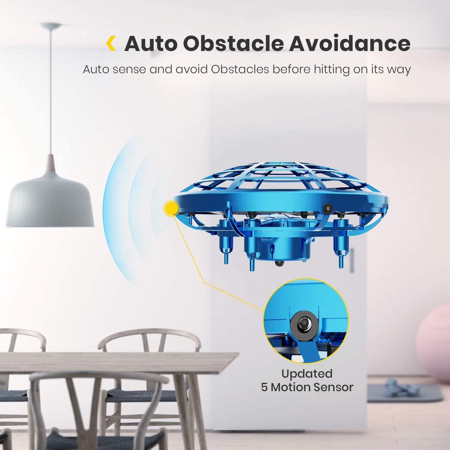 Cute Stone DEERC Mini 360°Rotating Smart Auto Sensing Hovering UFO Flying Toy Drones Hand Gesture Control Motion Sensor Helicopter With LED Light USB Charge Flying Ball Toys for Boys and Girls
