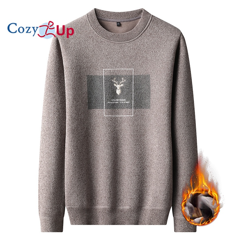 Cozy Up Men Long Sleeve Sweater Slim Round Neck Plus Velvet Warm Casual Knitted Pullover