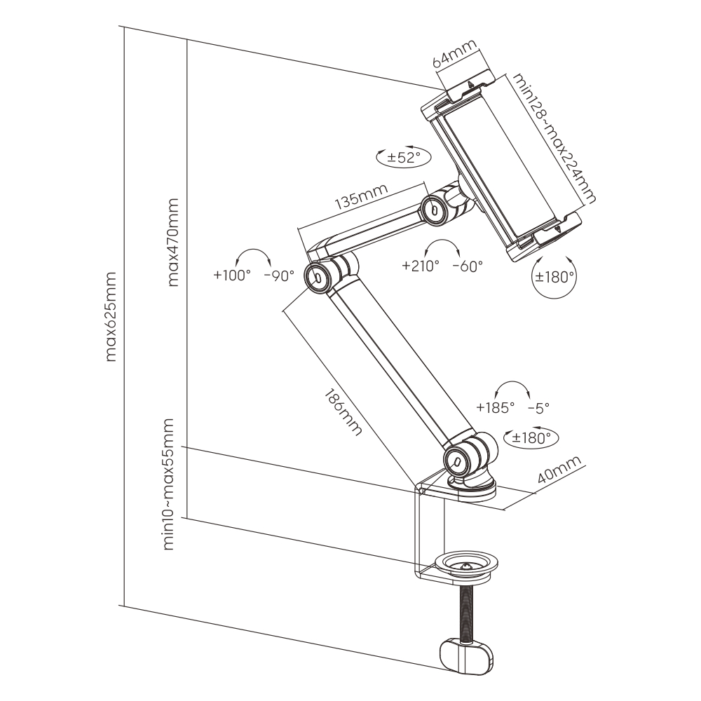 ULTi Clamp-on Tablet Holder for 4.7 to 12.9 inch Screens - Ergonomic Design: Swivel, Tilt & Rotate