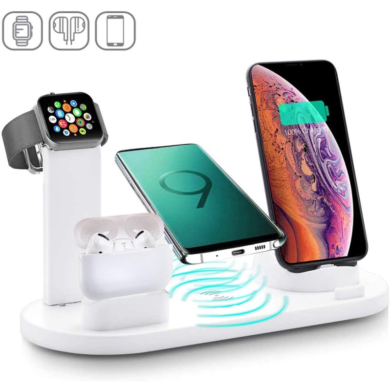 [SG] 4 in 1 Qi Fast Wireless Charging Dock for Apple Watch 7 6 and Airpods 2 3 Pro Charging Station for Multiple Devices Wireless Charger for iPhone 14 13 12 11