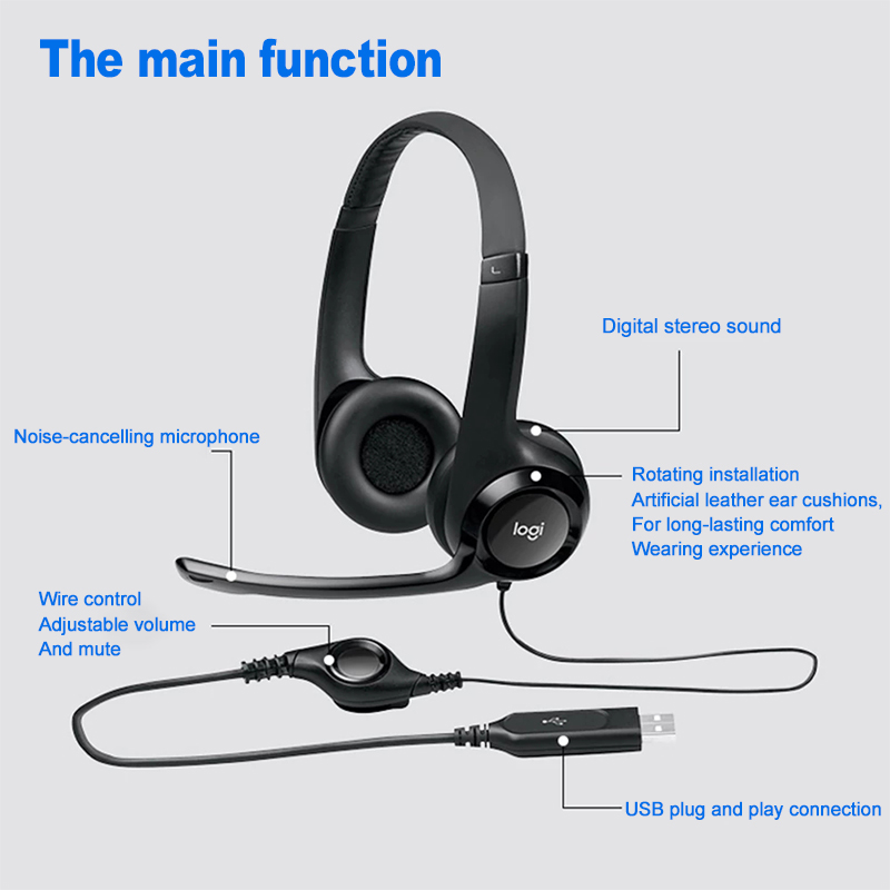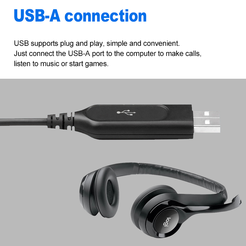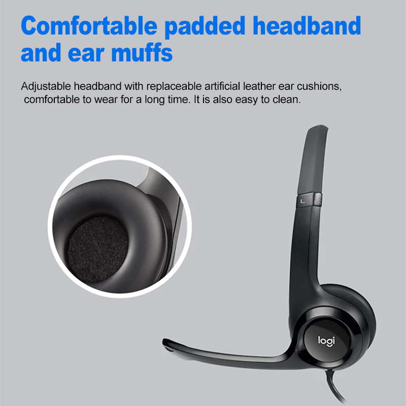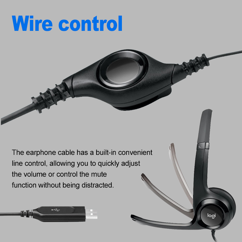 Logitech H390 USB Stereo Headset Wire Control Computer Headphones with Noise-Cancelling Mic Learning Conferencing Earphone