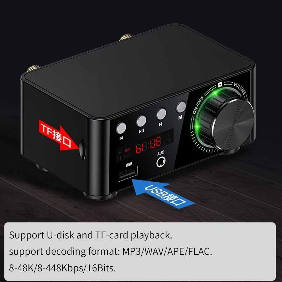 Mini Digital HiFi Bluetooth 5.0 Power Class D Am-plifier Audio Amp 50W*2 Home Theater Car Marine USB TF-Card AUX In