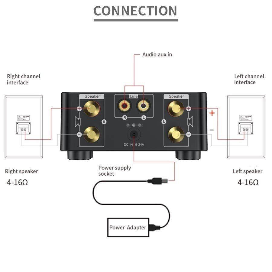 • Speaker impedance: 4Ω-16Ω