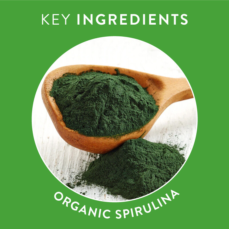 Spirulina is a microscopic blue-green algae and is a wholefood source of chlorophyll, vitamin B12, vitamin K, vitamin A and antioxidants.