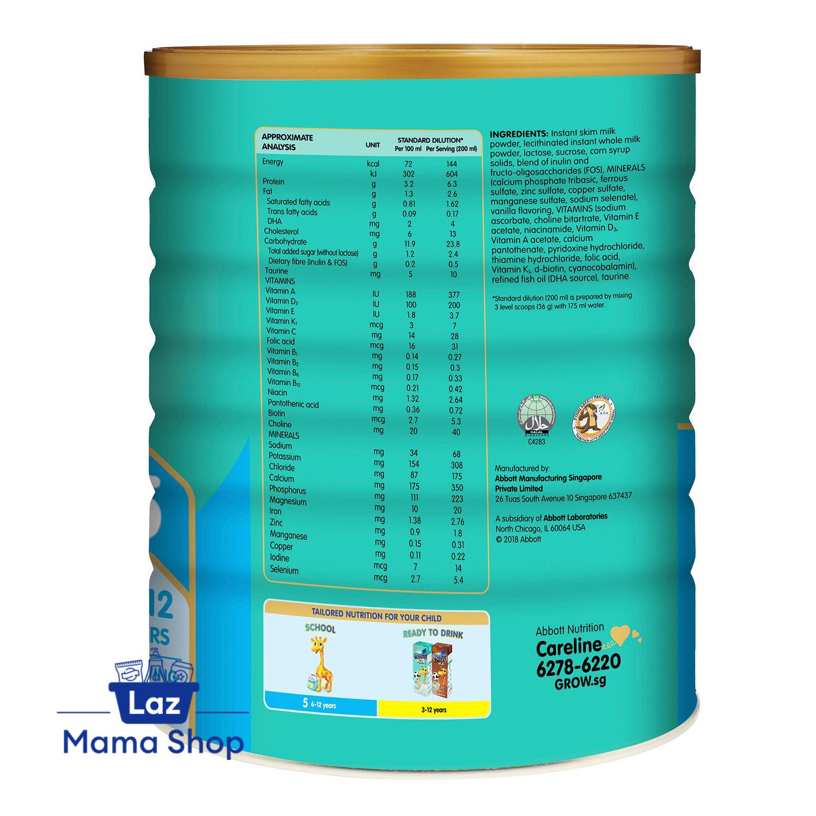 Abbott GROW milk powder for school-going children is formulated to provide essential nutrients to support their overall growth and development. GROW School is scientifically formulated to support the nutritional needs of your child in their formative years. Brain Development: DHA is an important building block for the development of brain and eyes. Growth: Calcium helps to support development of strong bones and teeth. Vitamin D helps support Calcium absorption and improves bone strength. Immunity: Antioxidant system with Zinc, Vitamins C and E to help protect cells from free radicals. Iron and Zinc are necessary for normal immune function. Unique vegetable fat blend with No Palm Oil. GROW is a Healthier Choice product which is lower in saturated fat and higher in calcium.