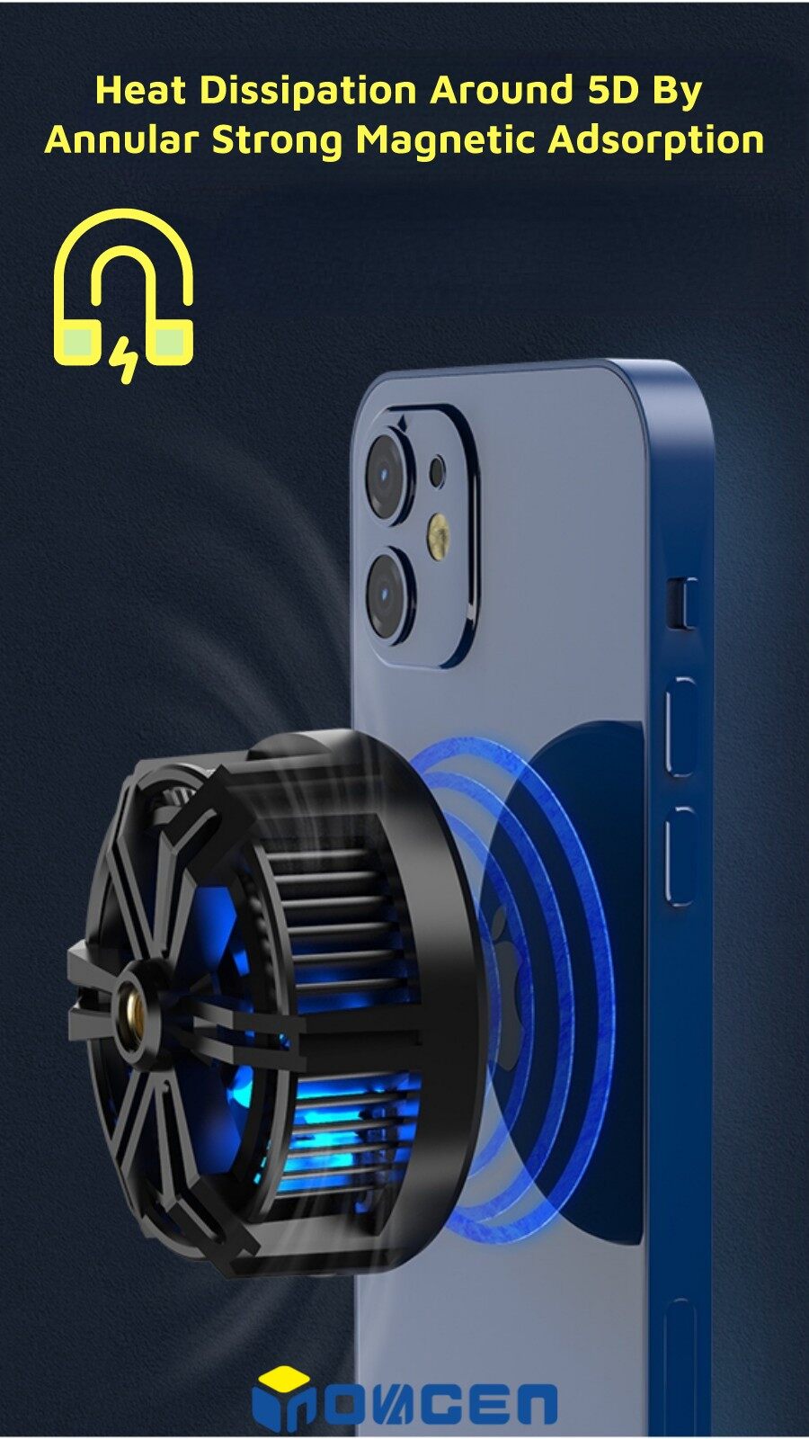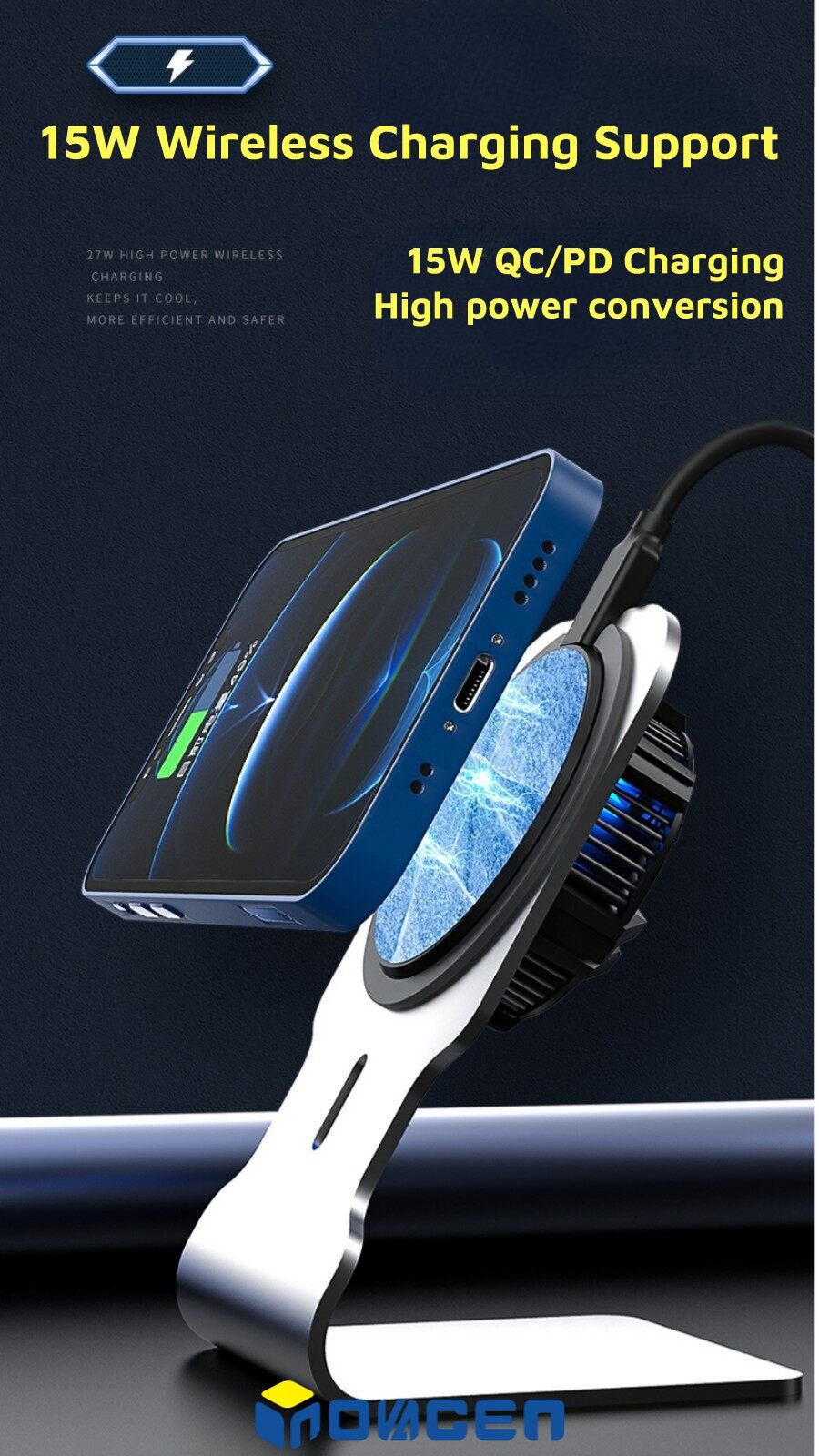 INOVAGEN Magnetic Phone Cooler With Phone Stand&Wireless Charging/Phone Radiator For Gaming PUBG Heat Dissipation MagSafe Support,15W QC/PD Fast Charging