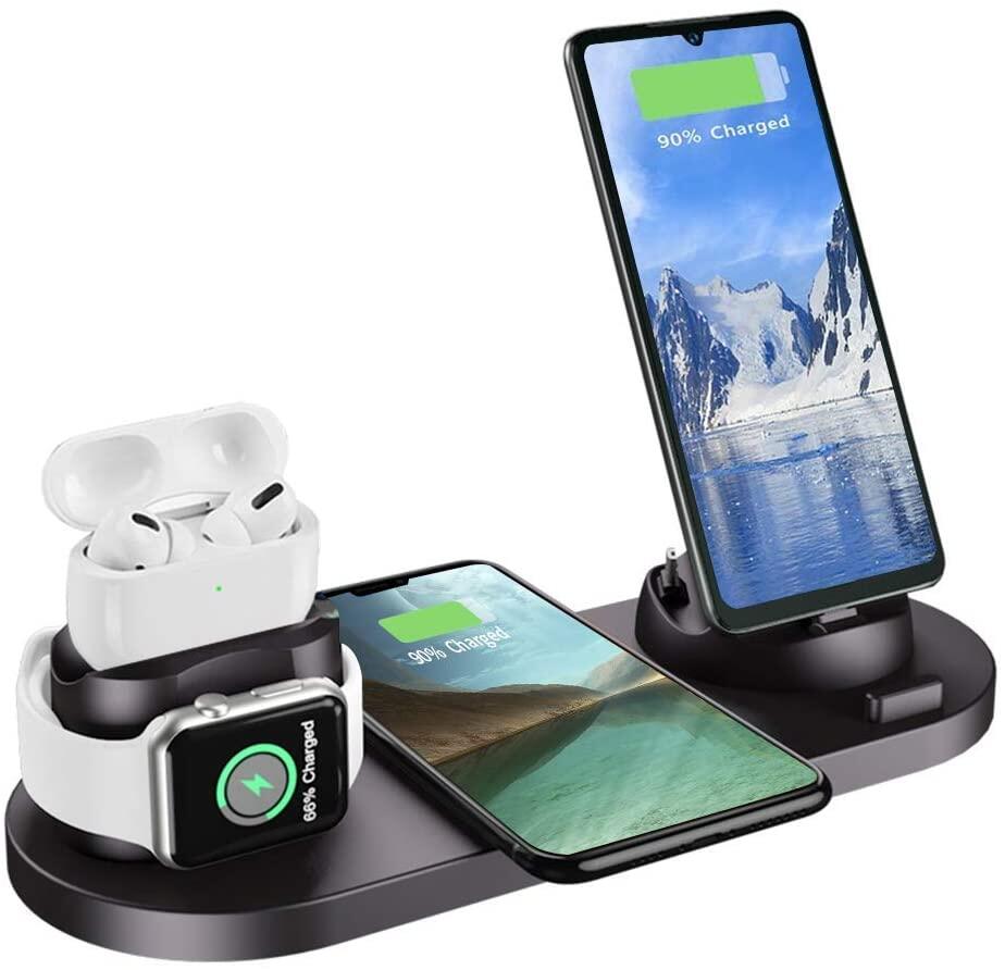 5 in 1 with Clock Time Display Wireless Charger Fast Charging Dock Station For iPhone 13 pro max 12 11 AirPods Pro 1/2/3 iWatch 6 5 4 3 2 1 SE Samsung S20 Wireless Charger Stand