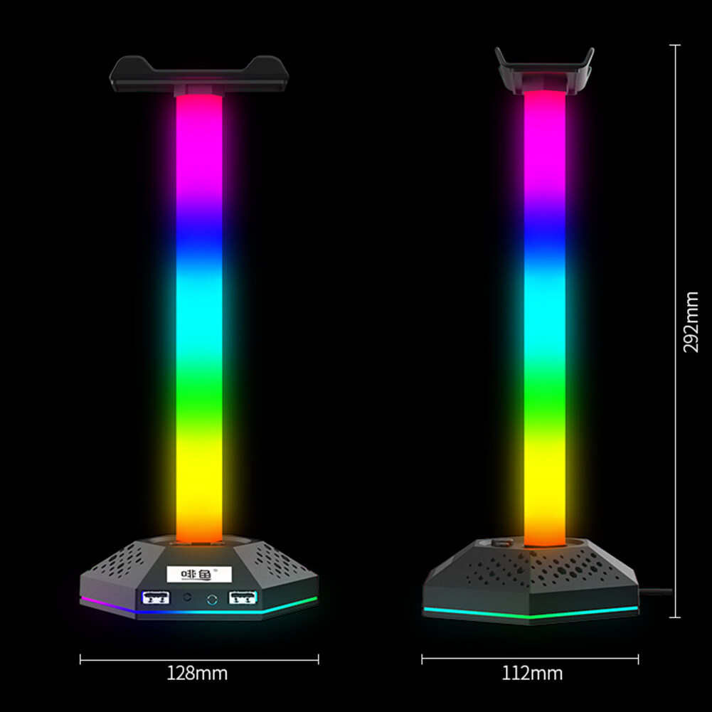 RGB Gaming Headphone Stand 12 Light Modes Headset Holder Bracket Universal Headphones Hanger Hollow Translucent Base Dual USB2.0 Expansion Interface 3.5mm Audio