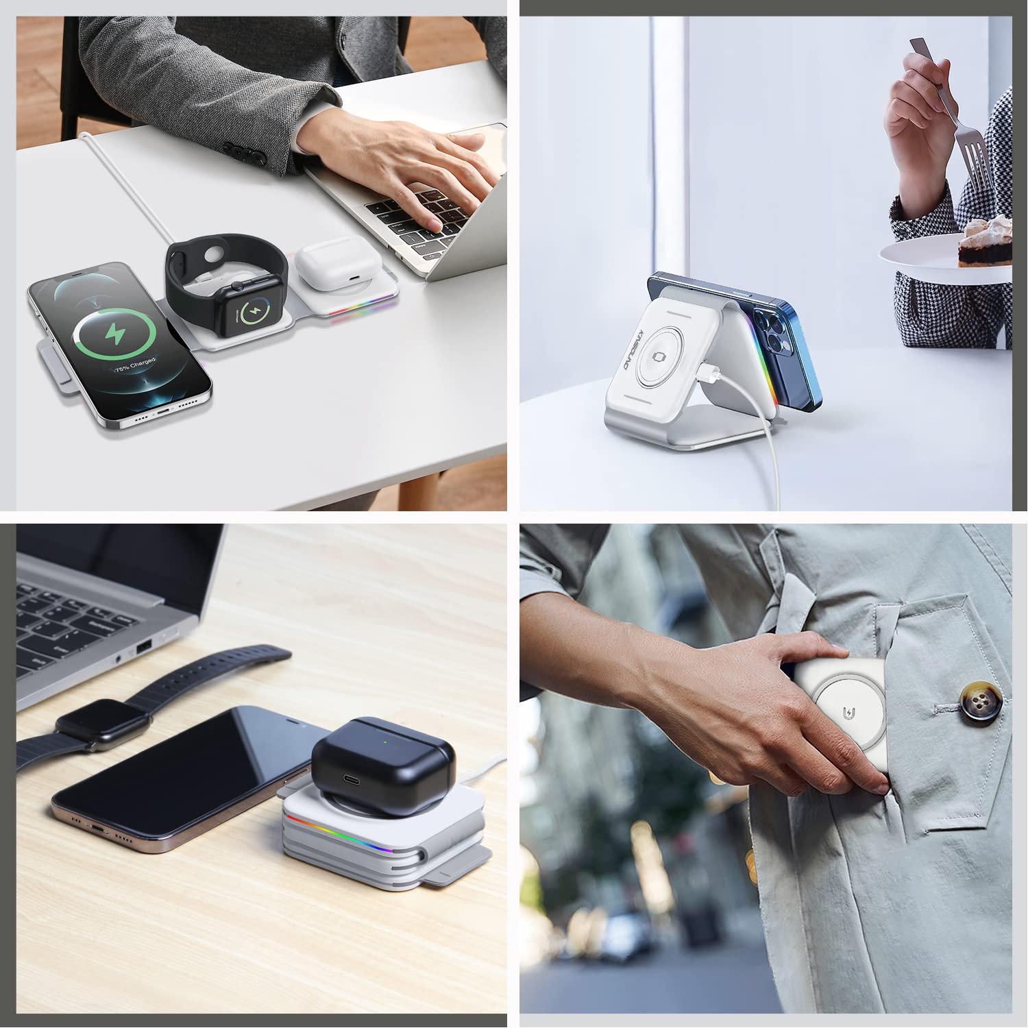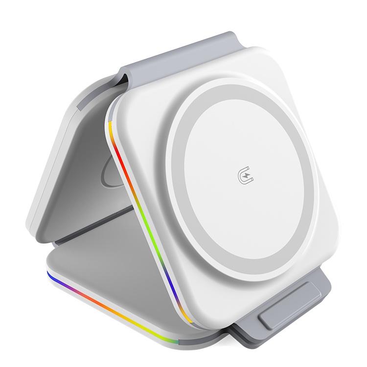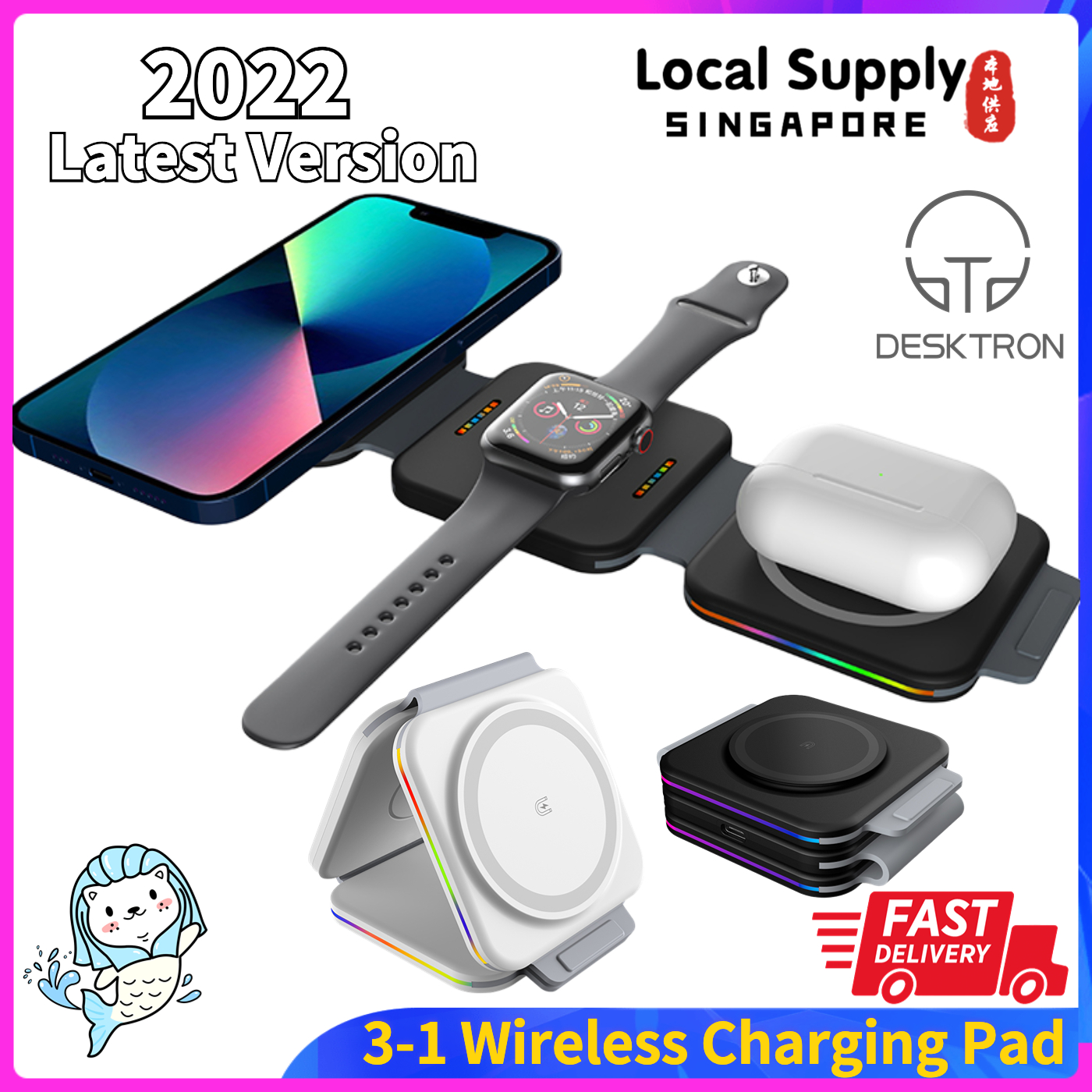 DESKTRON Wireless Charger Foldable 3 in 1 Travel Charger, Qi Wireless Charging Stand with LED Light, Phone Charging Station for iPhone Airpod iWatch Samsung Galaxy Watch and Earpod | SG STOCK