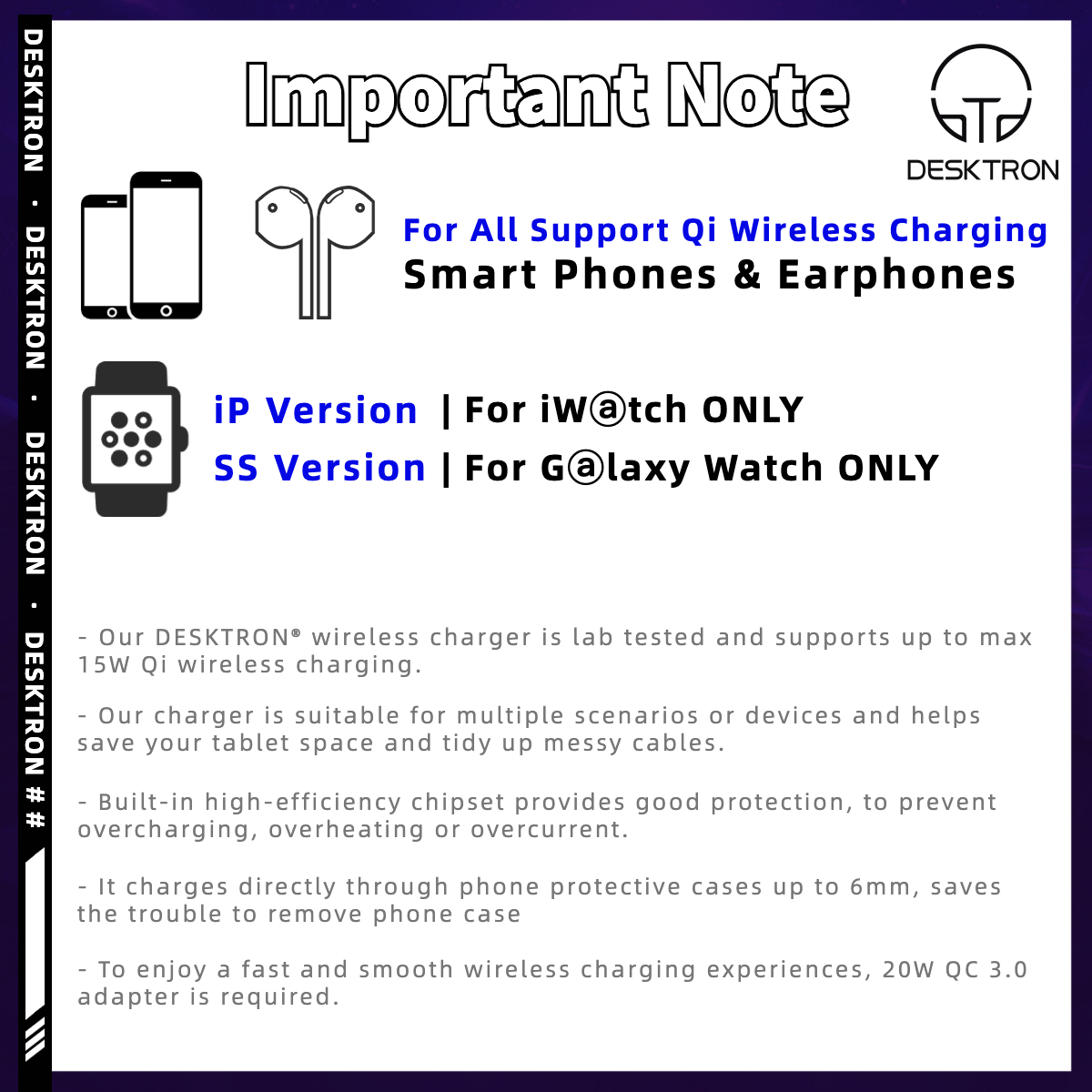 DESKTRON 4 IN 1 Wireless Charger. 15W Qi Fast Charging Station. Headphone Display Rack Compatible for iPhone 14, AirPods iWatch