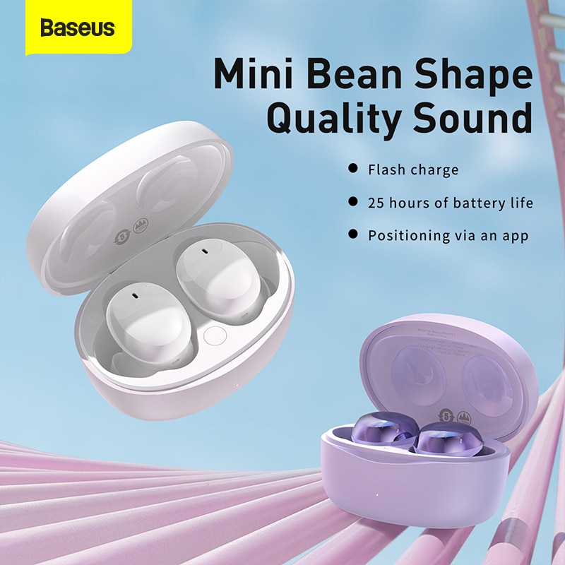 Baseus Official E2 TWS Wireless Earphone Bluetooth 5.2 Headphones, 0.06 Second Delay, Flash charge in 10min, Music for 2h