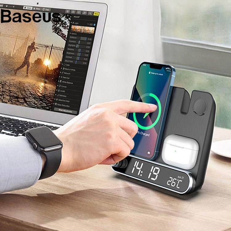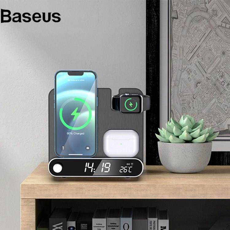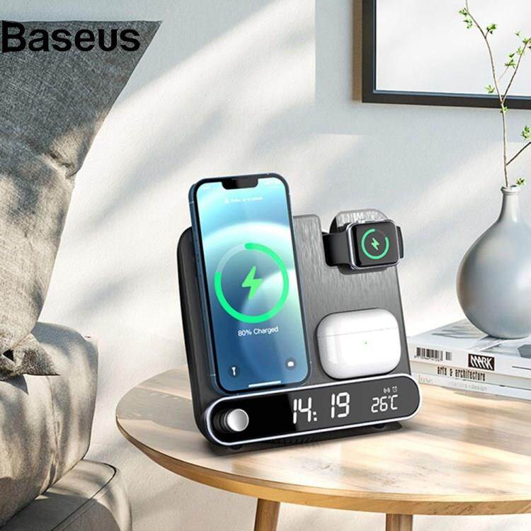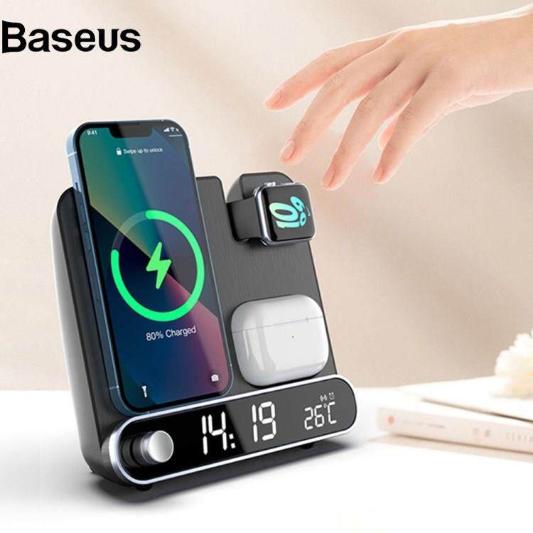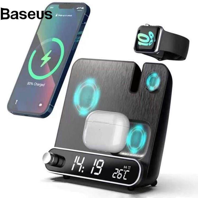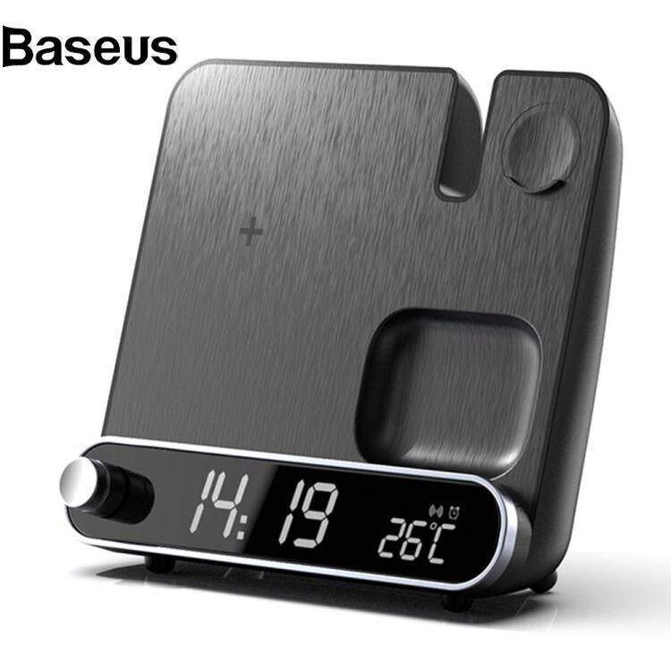 Baseus 15W Wireless Charger 3 in 1 Multi-function Charging Station Desktop Charging Stand with Alarm Clock Function for iPhone iWatch AirPods