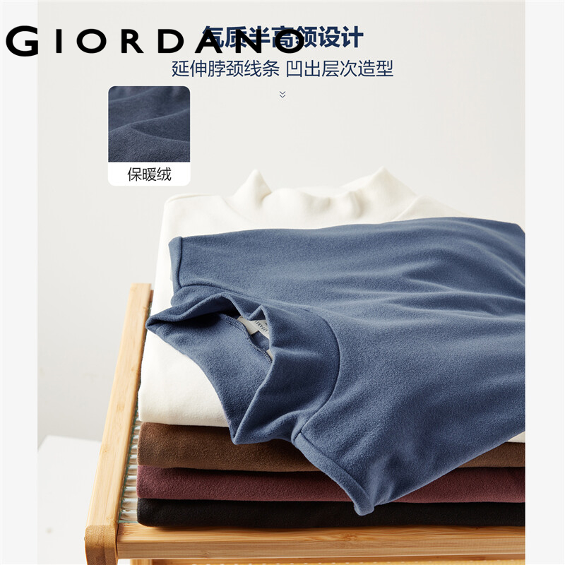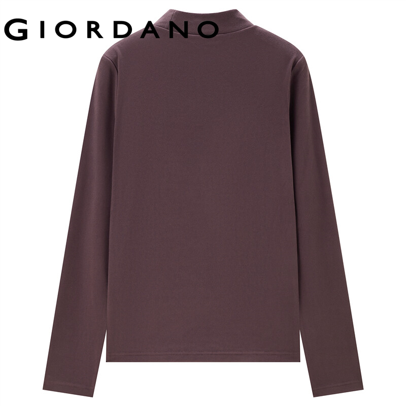 GIORDANO Women T-Shirts Mockneck Solid Color Long Sleeve Simple Basic Tee Stretchy Thermal Fleece Comfy Casual T-Shirts 05322822