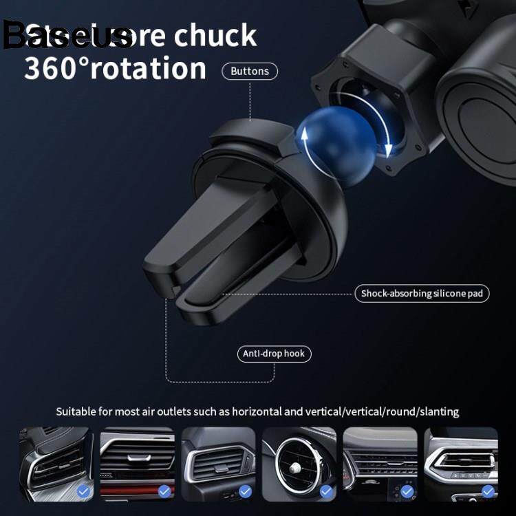Baseus T3 15W Wireless Charger 360 Degree Rotatable Car Mobile Phone Bracket Air Outlet Cellphone Stand