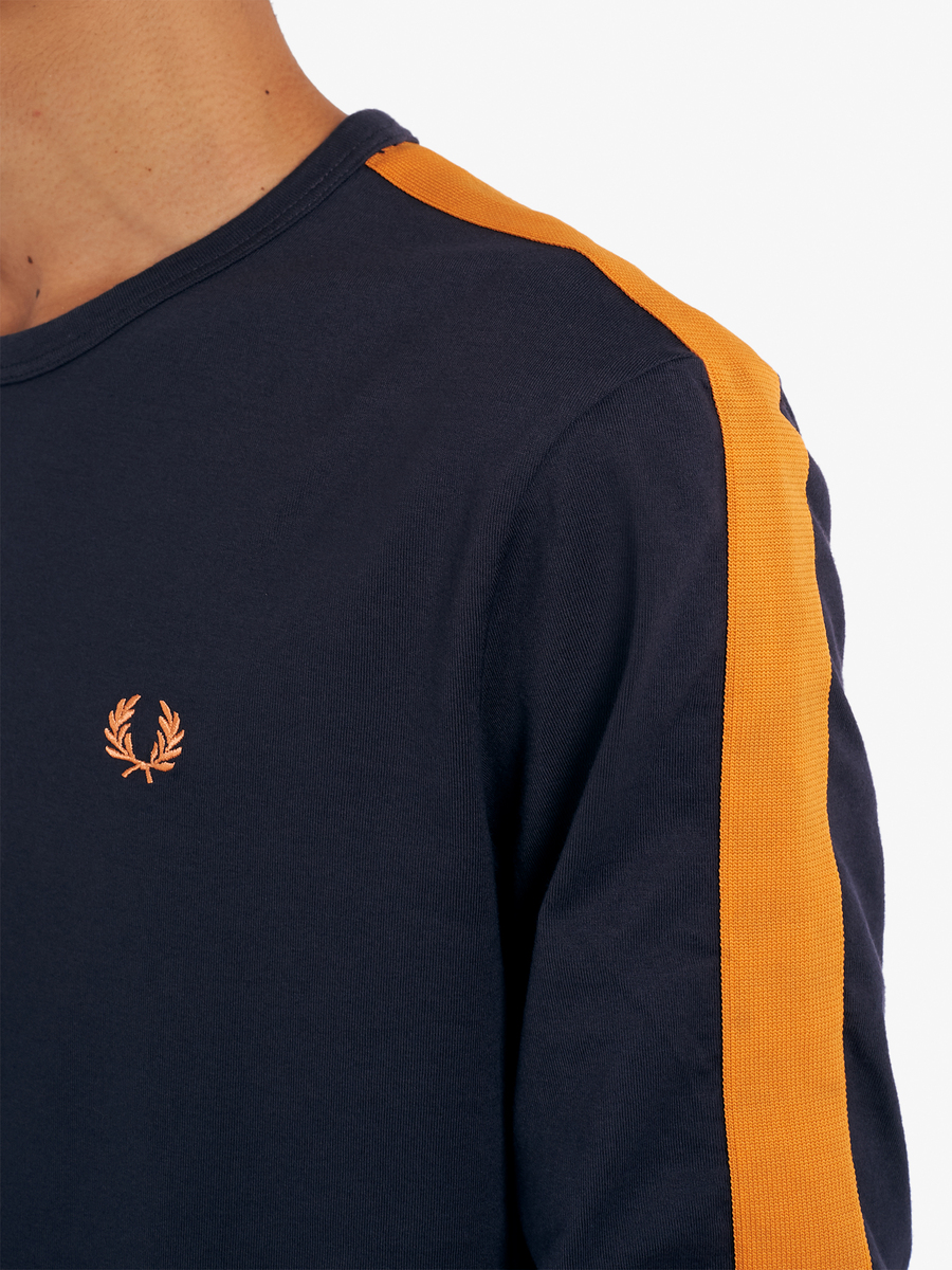 Fred Perry M3828 Made in Japan Botanical Dye Long Sleeves Ringer T-Shirt (Black/Tangerine)
