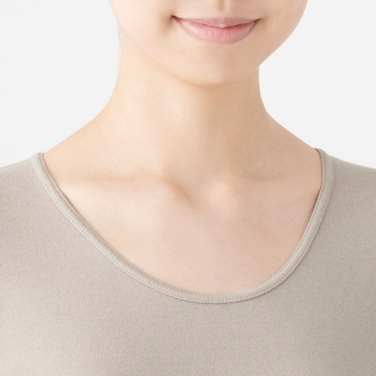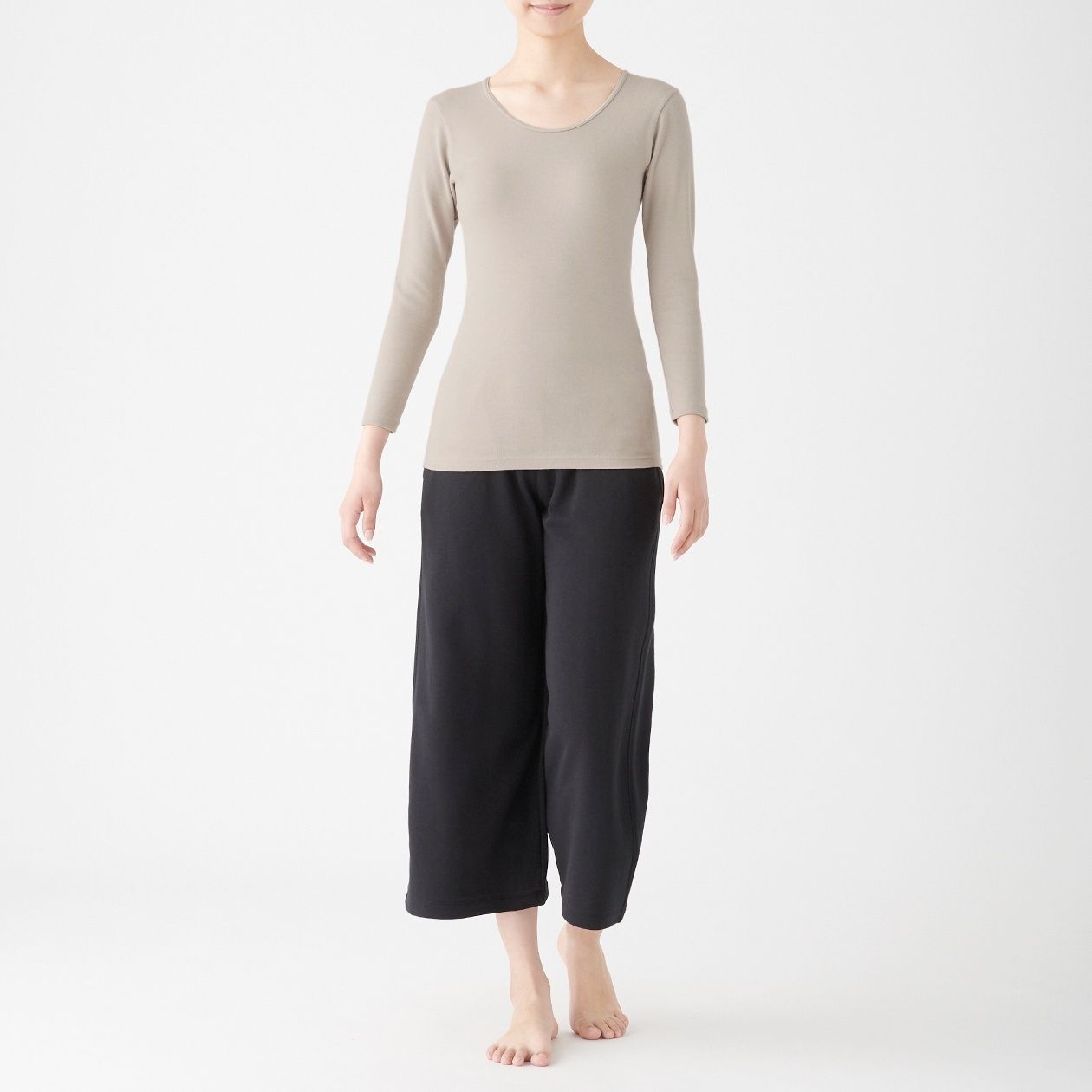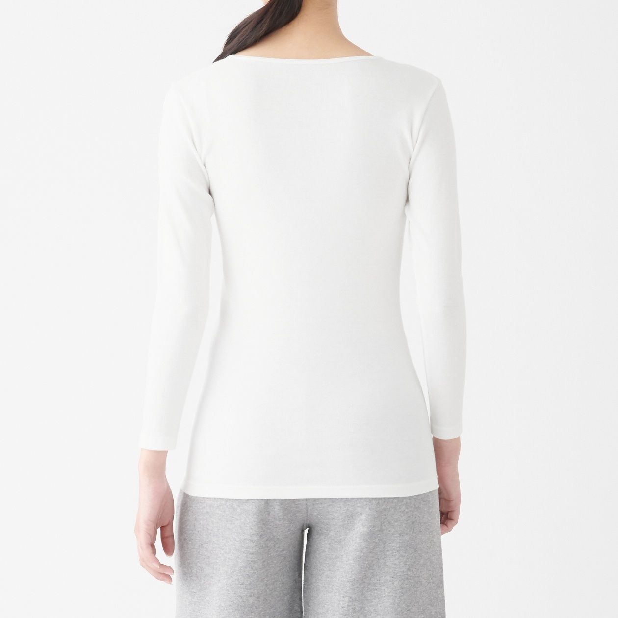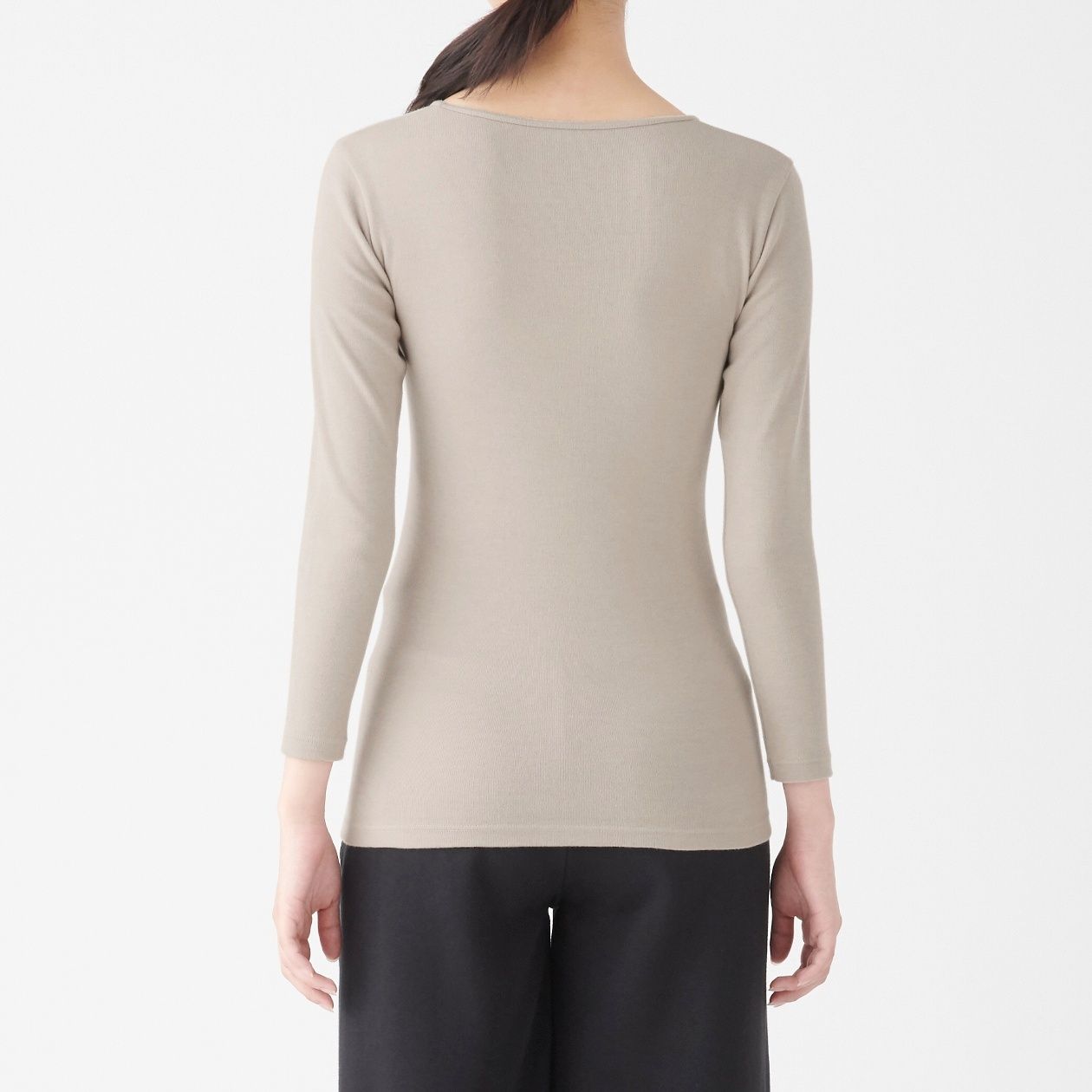 MUJI Ladies Cotton Wool Warm U Neck 4/5 Sleeve T Shirt