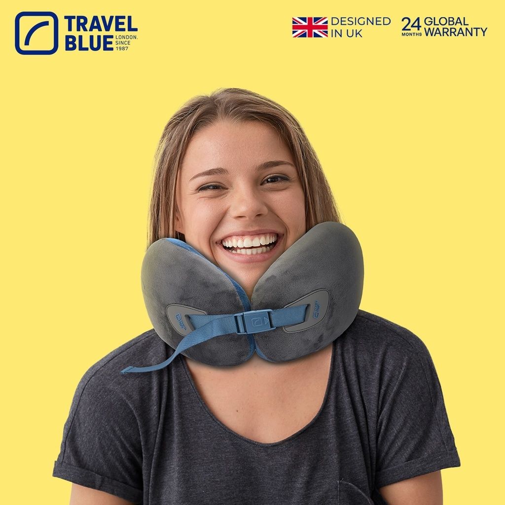 Travel Blue Infinity Pillow - High Quality High Density Memory Foam Ergonomic Neck Pillow