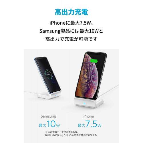 Anker PowerWave 7.5 Stand Wireless Charger Qi Certification iPhone 12/12 Pro Galaxy Various Supports Up to 10W Output (White)