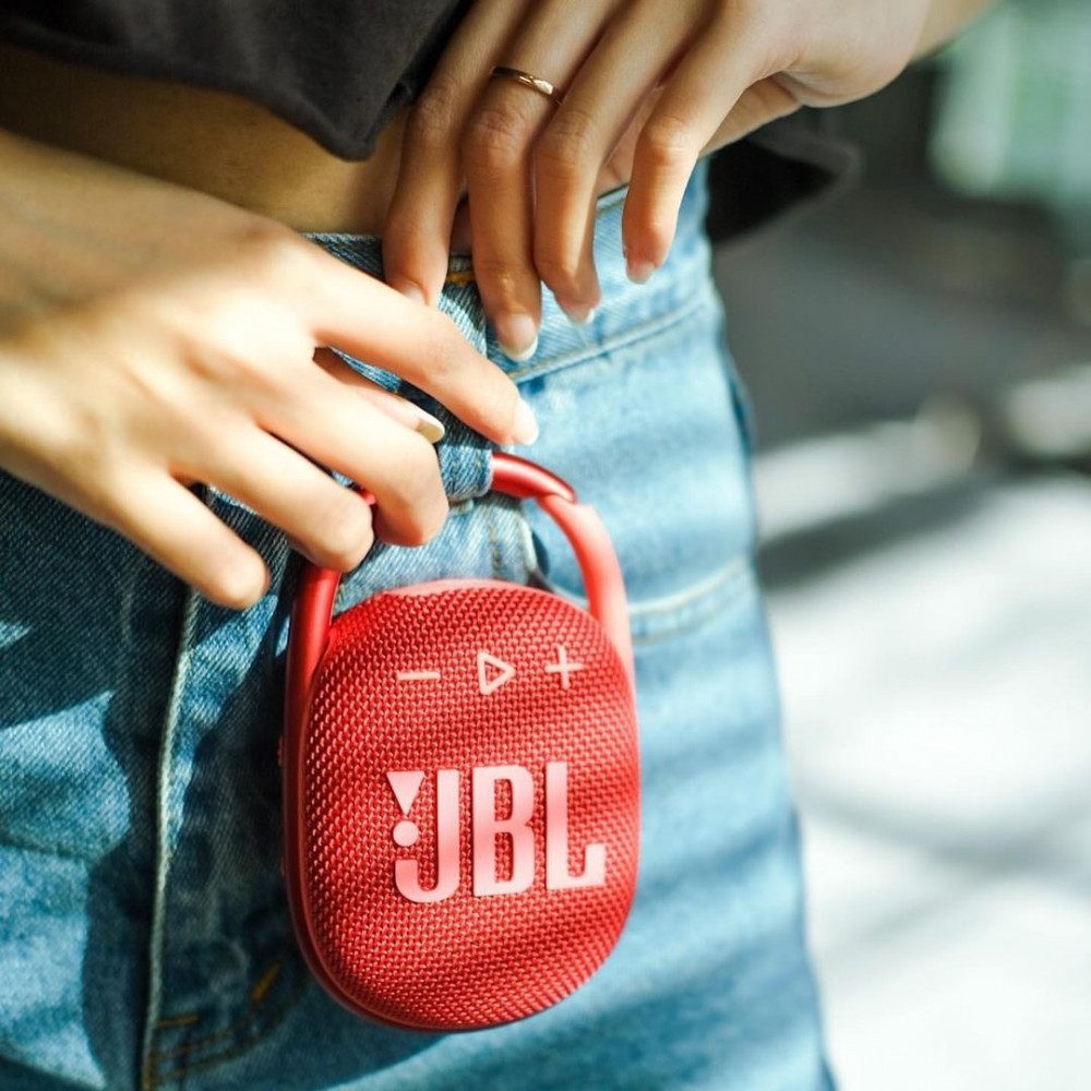 JBL Clip 4’s ultra-portable design goes great with the latest styles, and its colorful fabrics and expressive details make it look as great as it sounds.