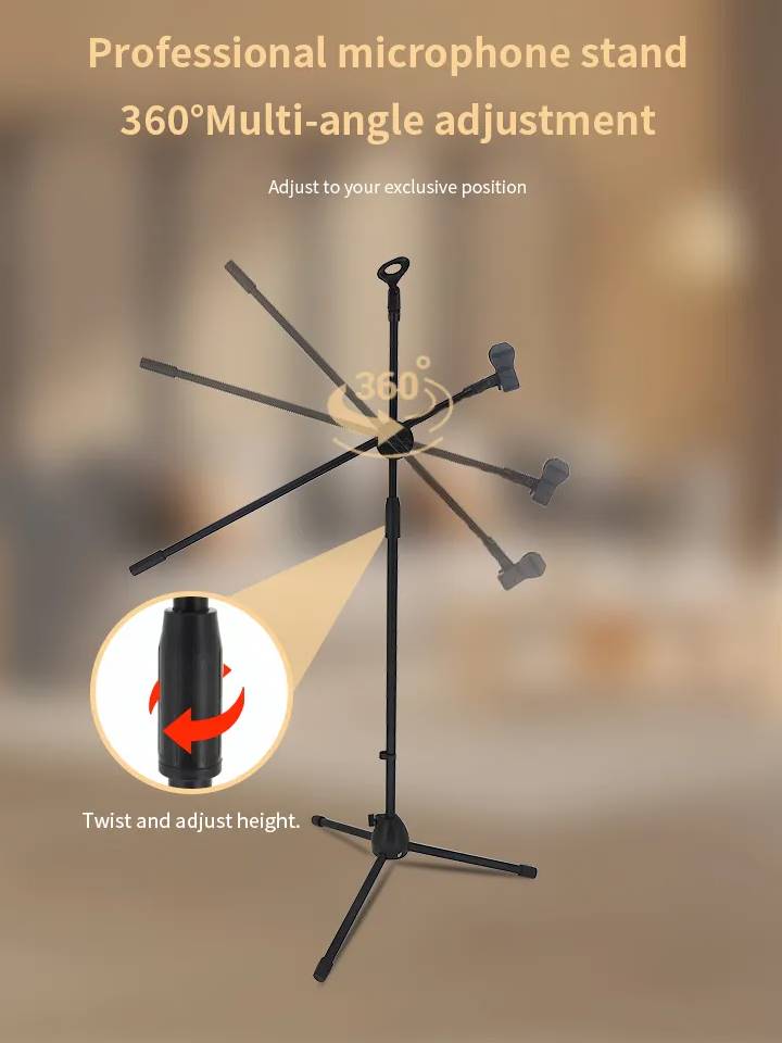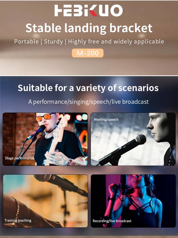 M-200 Professional Adjustable Double 2 in 1 Microphone Tripod Mic Stand With Dual Mic Clip