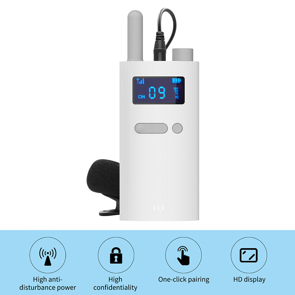 1. Wireless Explainer Microphone: Transmitter, which mainly transmits voice content through the device, and can realize one person explaining and multiple people listening under the same channel as the receiver. The receiver is mainly used to receive the voice content transmitted by the transmitter.