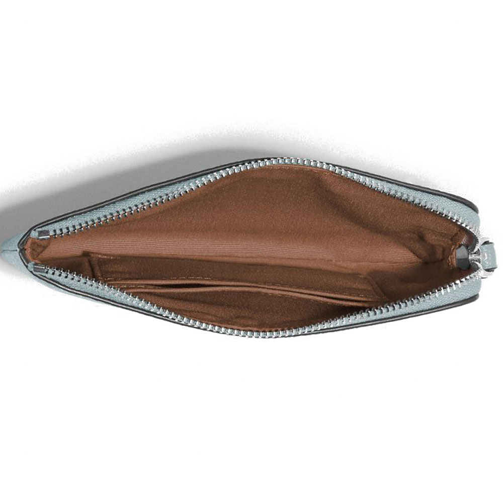 Coach Wristlet In Gift Box Small Wristlet Crossgrain Leather Corner Zip Wristlet Powder Blue # 58032