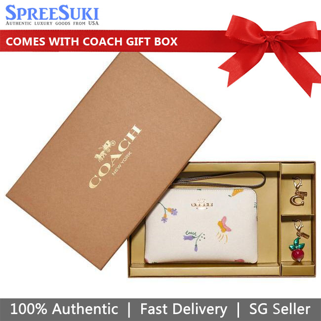 Coach Wristlet In Gift Box Small Wristlet Boxed Corner Zip Wristlet With Dreamy Veggie Print Chalk Off White # C8331