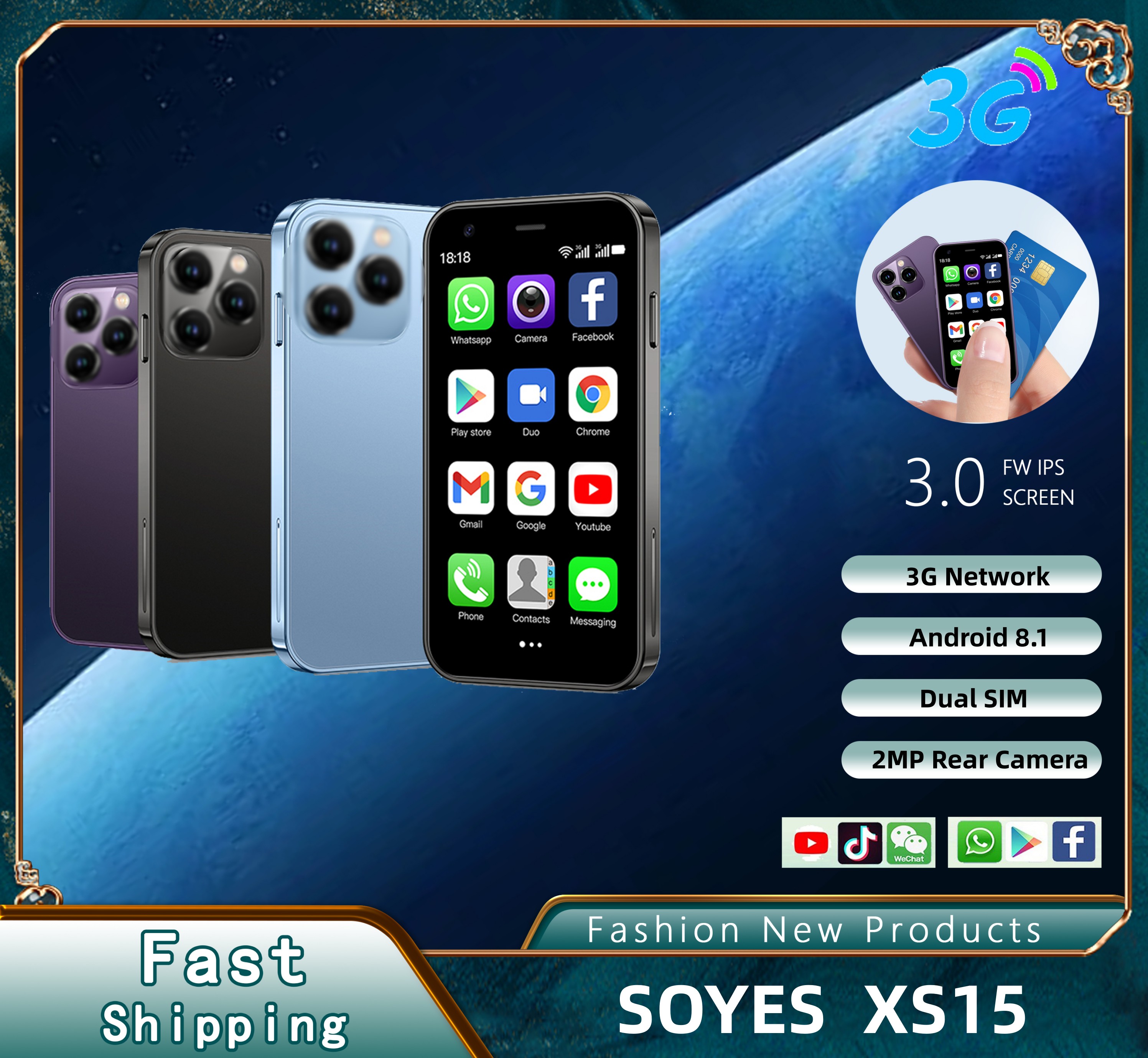 SOYES XS15 3G Smart Little Phone Android System Mini and Portable Flagship Configuration Dual SIM Dual Standby 3.0 Inch Display 2GB RAM 16GB ROM Smart Phone