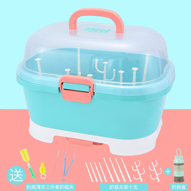 Baby Bottle Storage Box Portable Large Dust-Proof Drying Draining Rack Baby Tableware Organizing Dry Storage Box