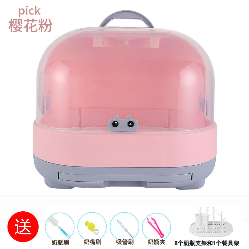 Baby Bottle Storage Box Portable Dustproof Draining Rack with Lid Baby Tableware Milk Powder Storage Box Shelf