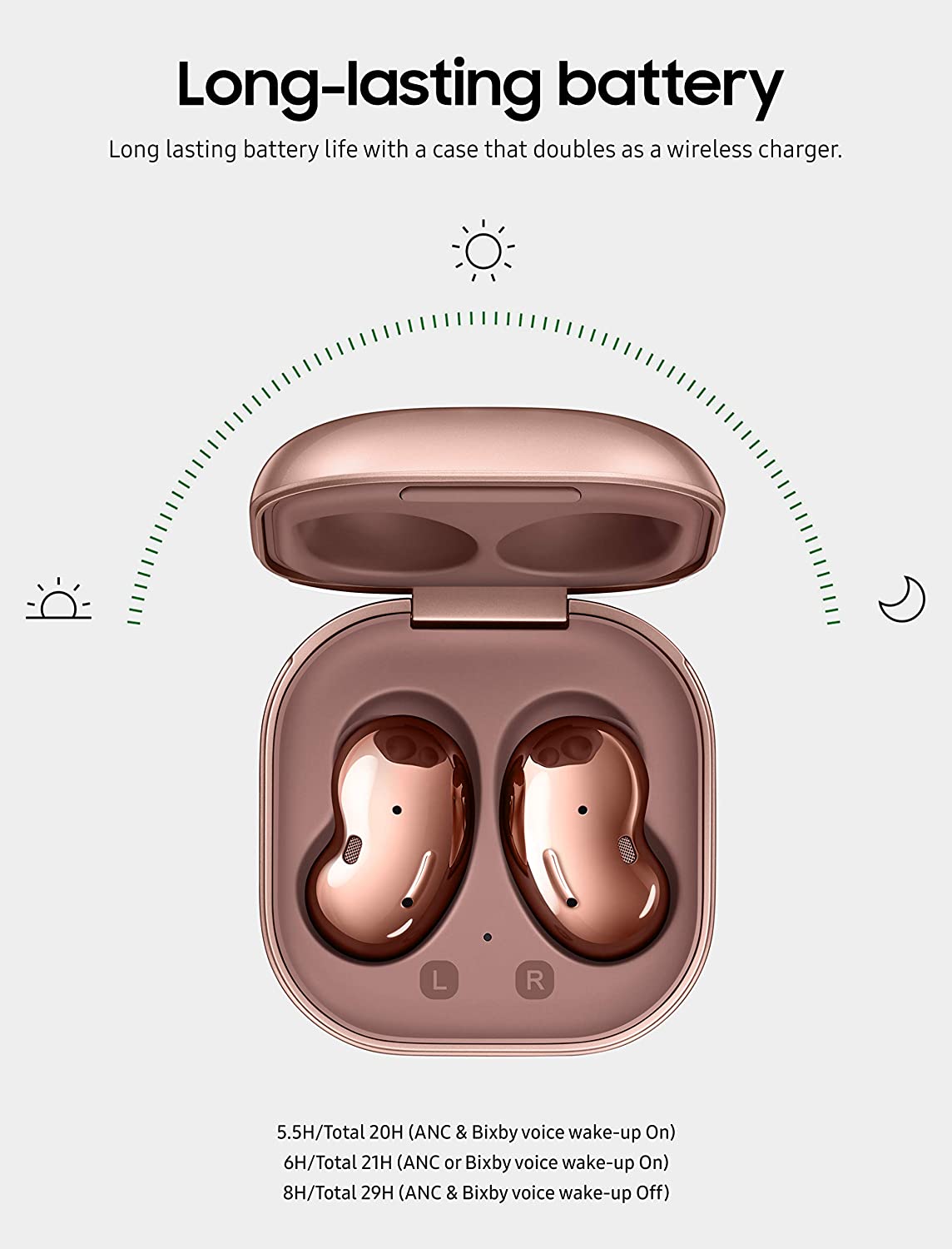 Up to 21hrs worth of battery life with charging case
