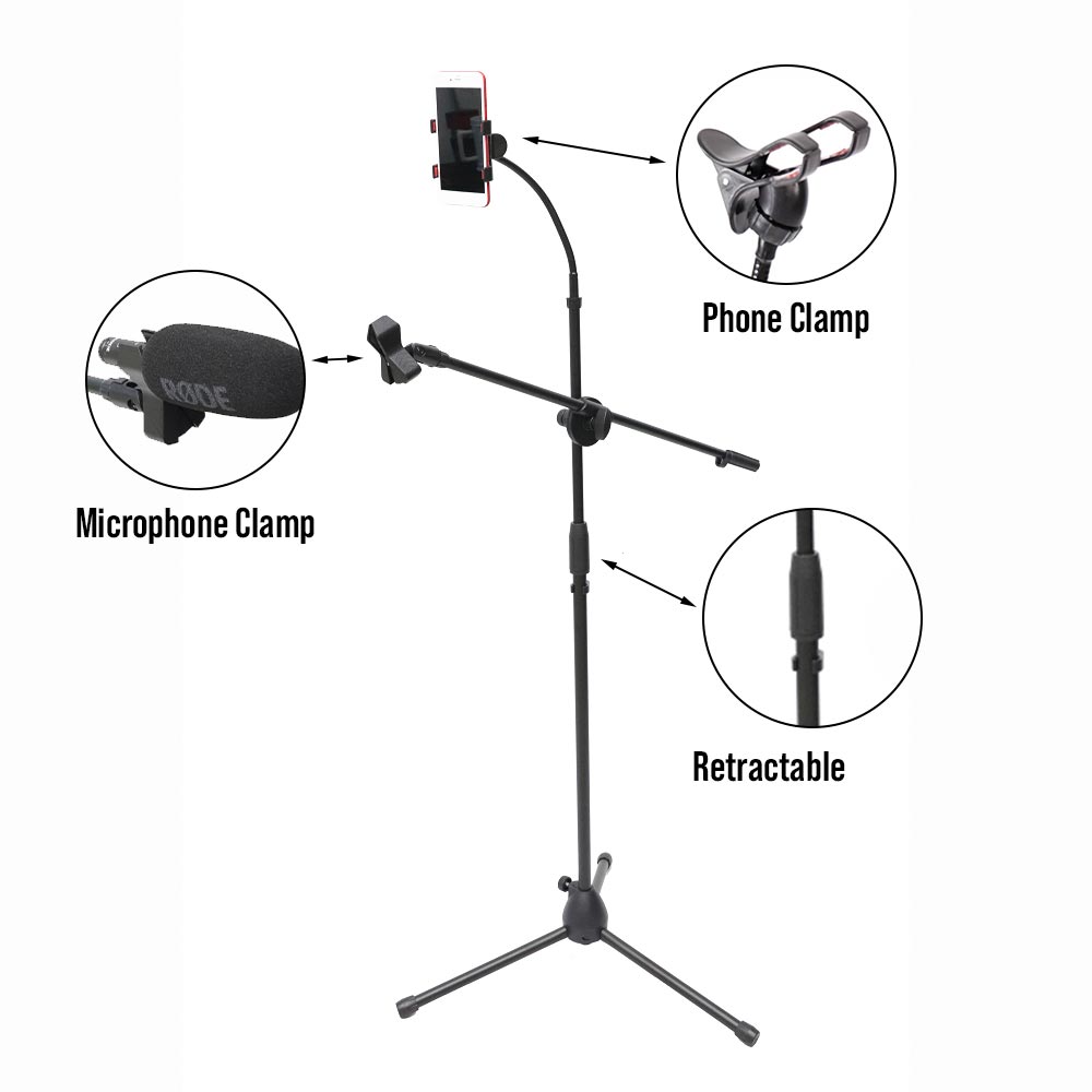 eDSLRs Professional Microphones Swing Boom Floor Stand Mic Stand With Mobile Phone Holder TikTok Live Stream Facebook Live