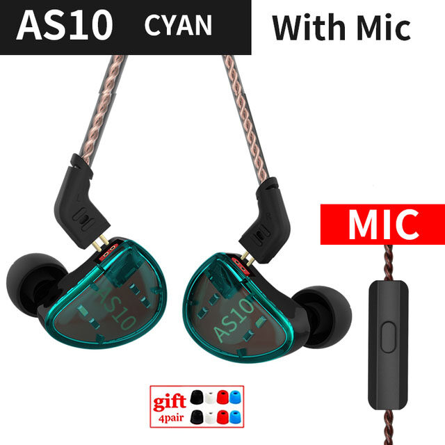 KZ AS10 Headset 5 balance armature driver ear earphone HIFI bass monitor music earphone general ZS10 ZST BA10 ES4 AS16 AS12 ZSX
