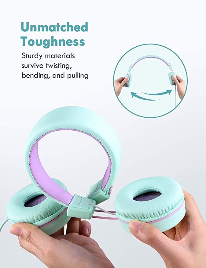 • Long-lasting companion for kids: Mpow kids on-ear headphones are made from food-grade materials applying for children above 3 years old. The wired headphones adopt over 47 in. Tangle-free Nylon wires and durable ABS material headband, which can easily survive the hard treatment of little kids.