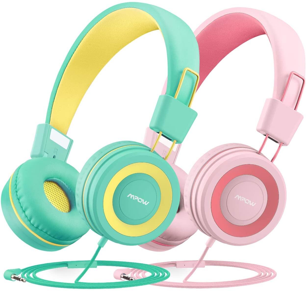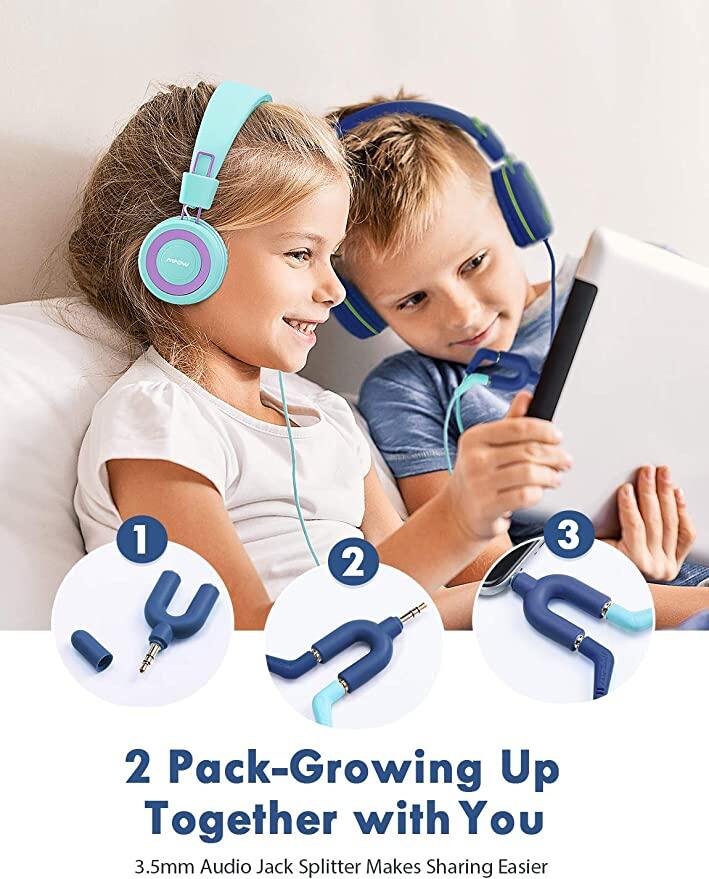 • 2-Pack easy sharing: Mpow kids headphones come with 2-Pack set with a sharing Splitter, letting kids get used to share with family and friends. The foldable design aims for a more compact portability and storage, making your journey easier than ever.