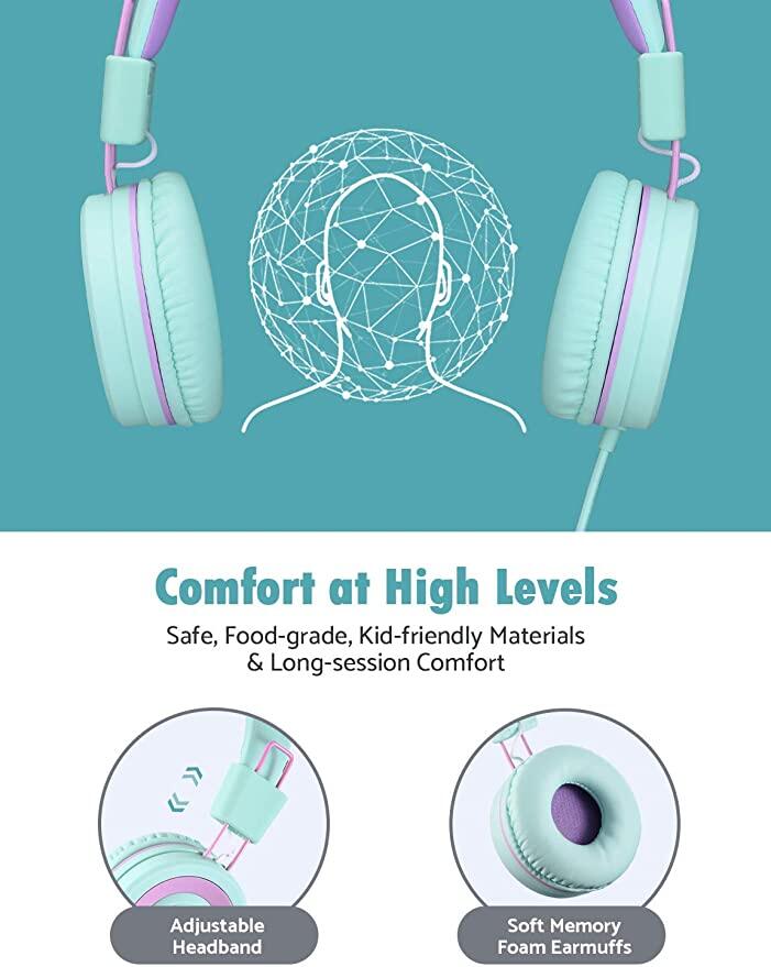 • Hearing Protection for tender kids ears: The volume Limitation level is intentionally set to 91dB, which allows the headphones better compete with airplane rumble or car noises on Road trips, as long as the listening session doesn't exceed two hours before there's at least a few minutes break.