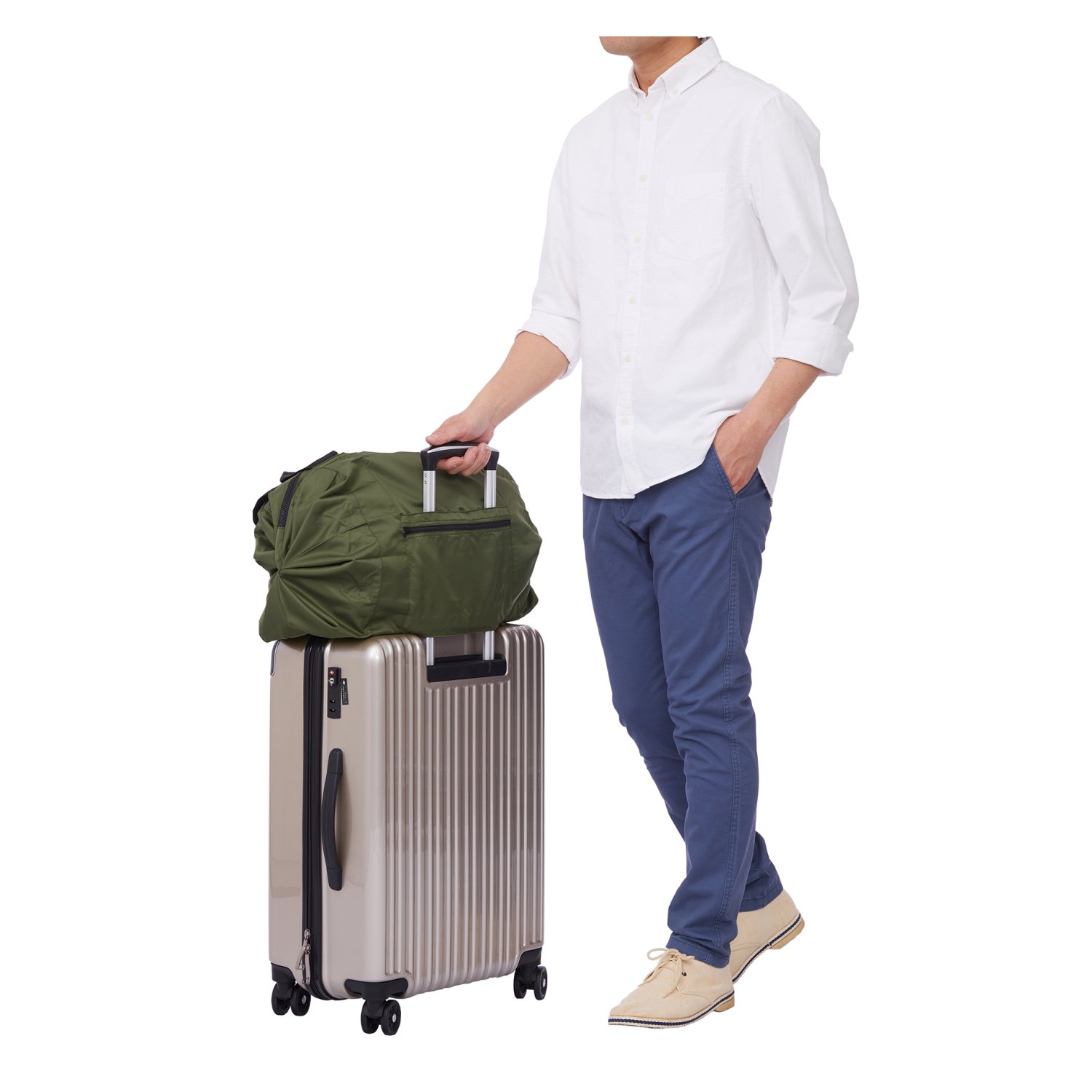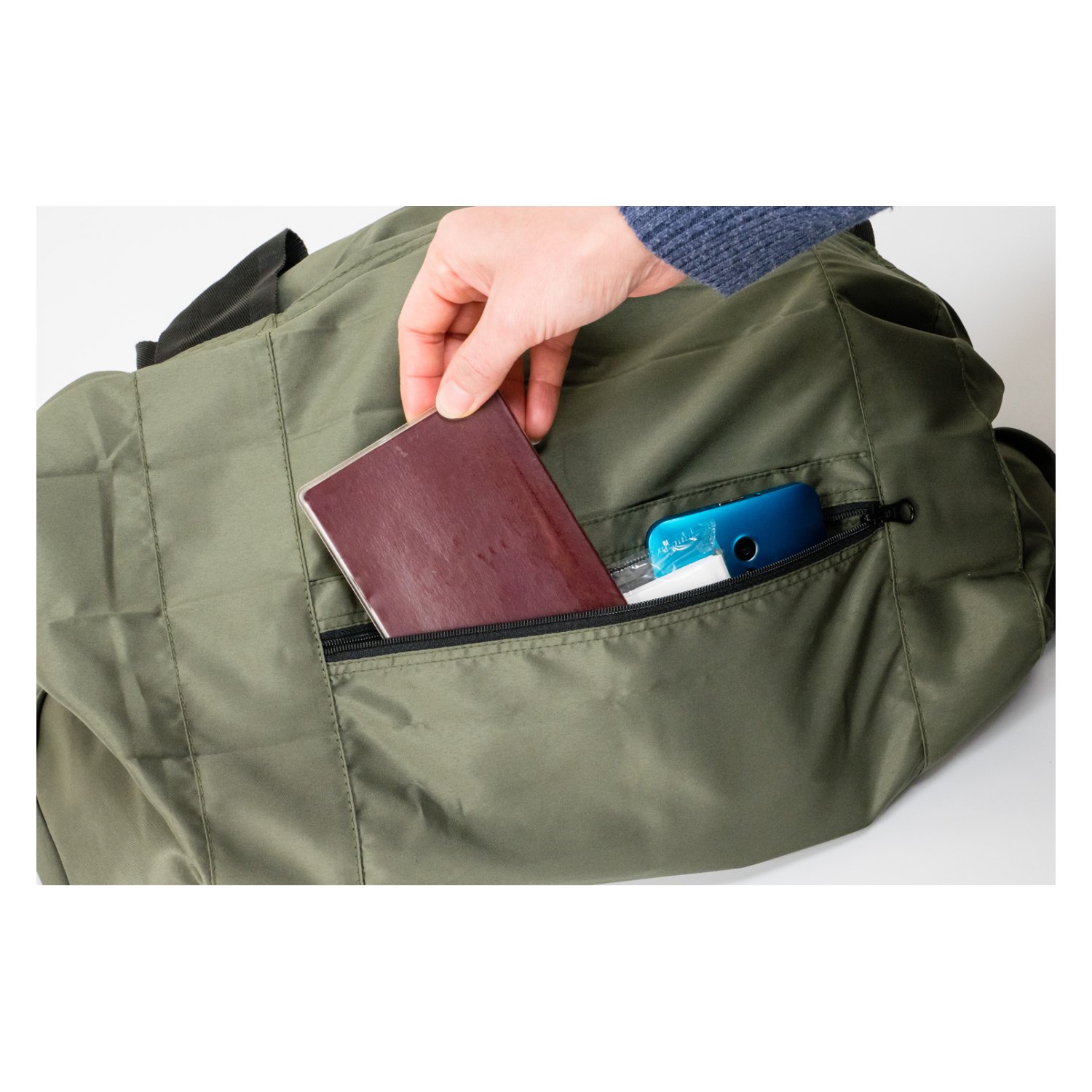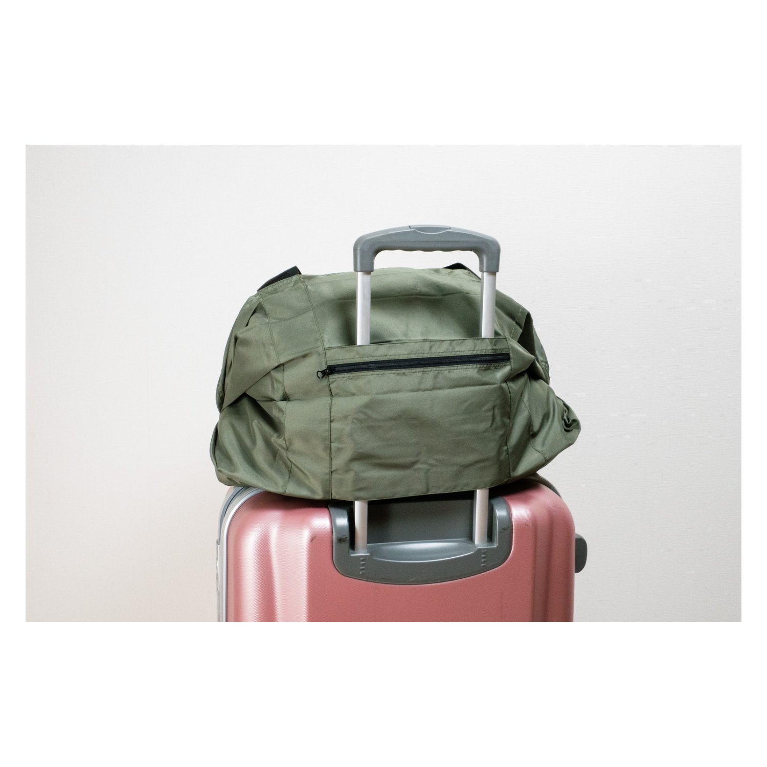 The Shupatto Travel Duffel Bag can be attached to your suitcase. It has an easy access zip pocket on the outside for storing small items.