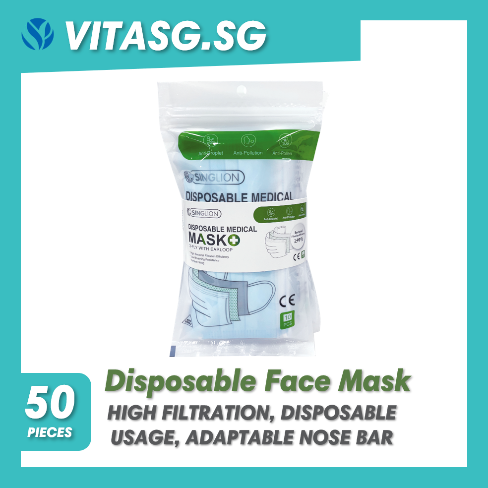 [Local Restock] Singlion 3 ply Disposable Surgical/Medical Face Mask Singlion Medical Mask (3-Ply With Earloop) - Disposable, Adaptable Nose Bar, High Filtration