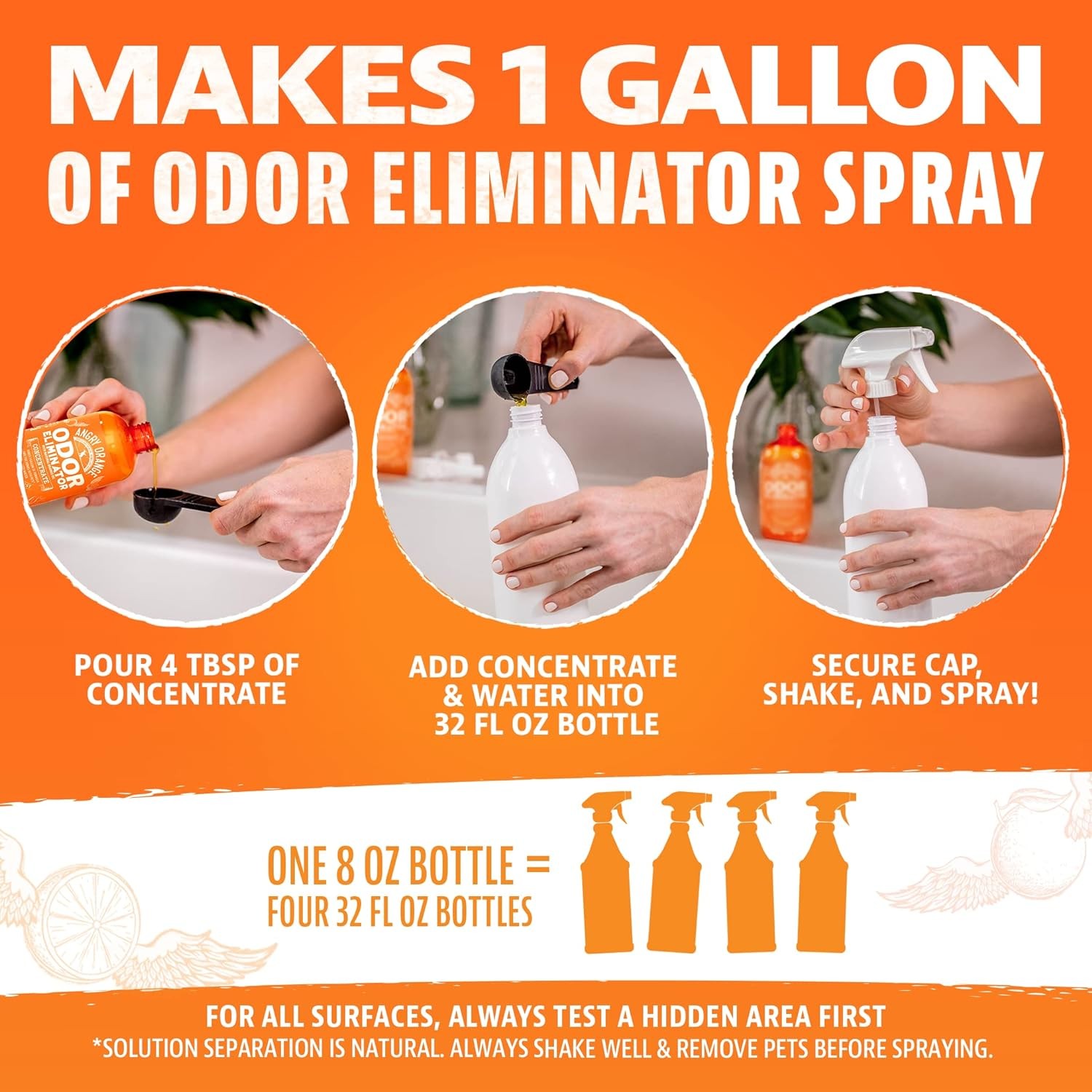 Angry Orange Pet Odor Eliminator for Home - 8oz Dog and Cat Pee Smell Remover for Carpet, Grass, Tile and Furniture - Citrus Concentrate, Makes 128oz of Liquid