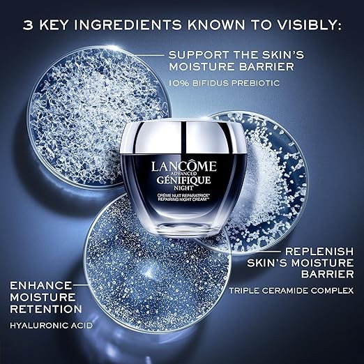 Lancôme Advanced Génifique Night Cream - Repairs Skin Barrier Overnight - With Bifidus Prebiotic, Hyaluronic Acid & Triple Ceramide Complex - 1.7 Fl Oz